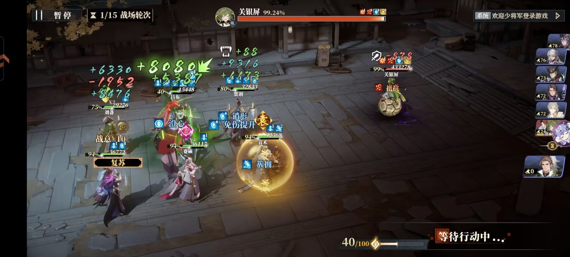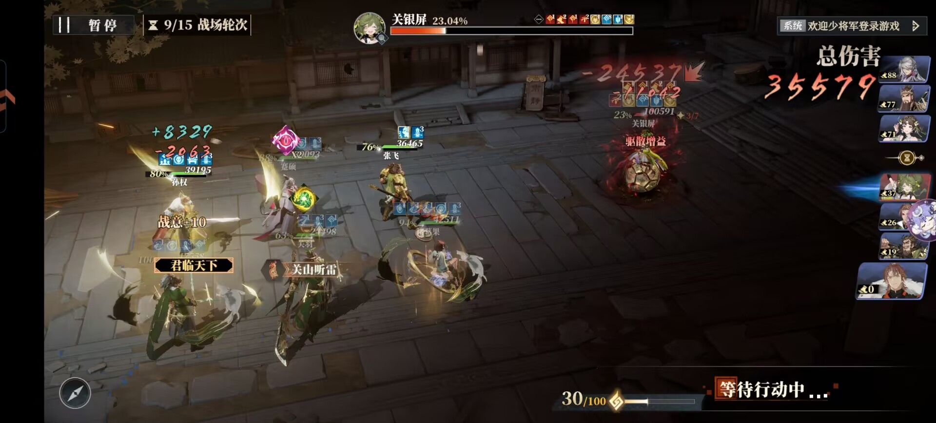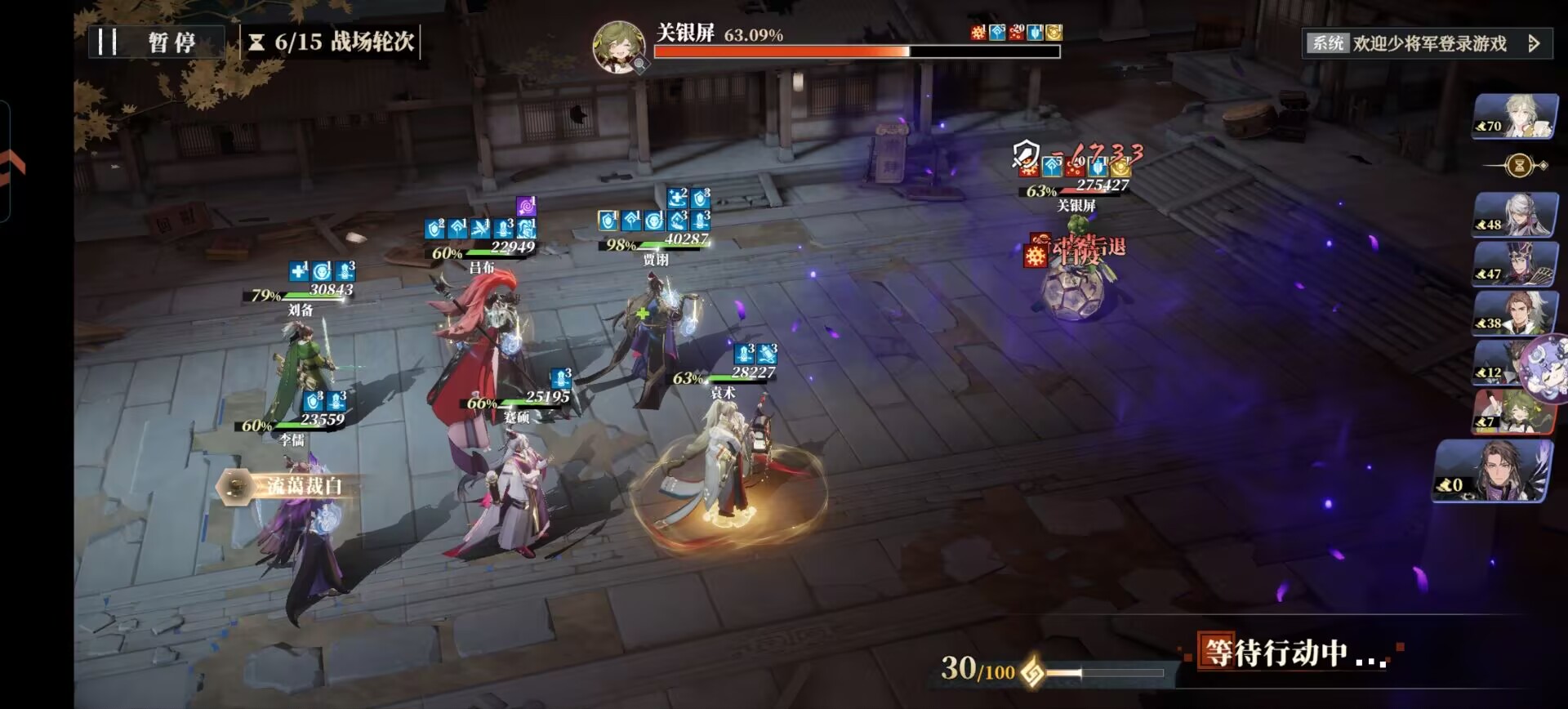 ③也可以考虑上能够击退关银屏行动条的武将来加速升我方优先行动。