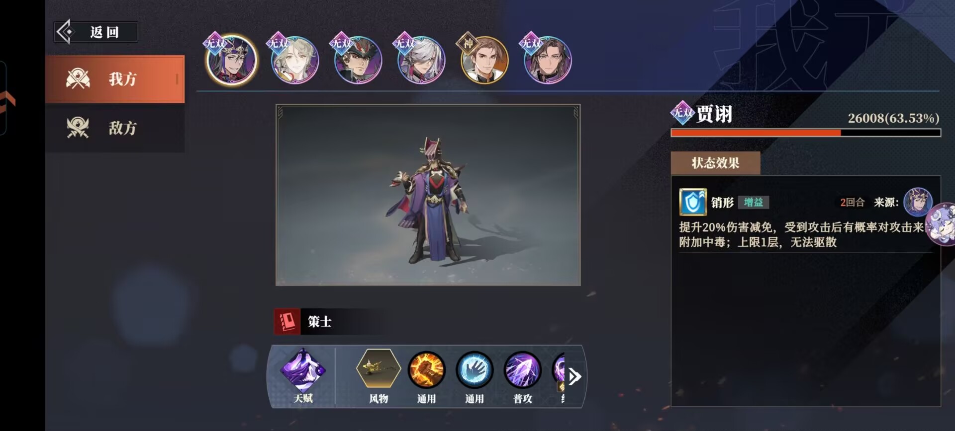 同时贾诩和李儒职业选择策士,不仅可以高效驱散关银屏的增益,还可以提升自身的免伤。