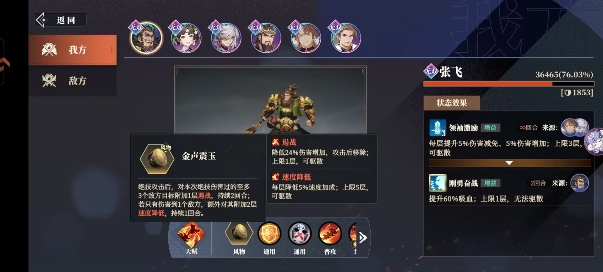 张飞:金声震玉(降低关银屏伤害和速度)