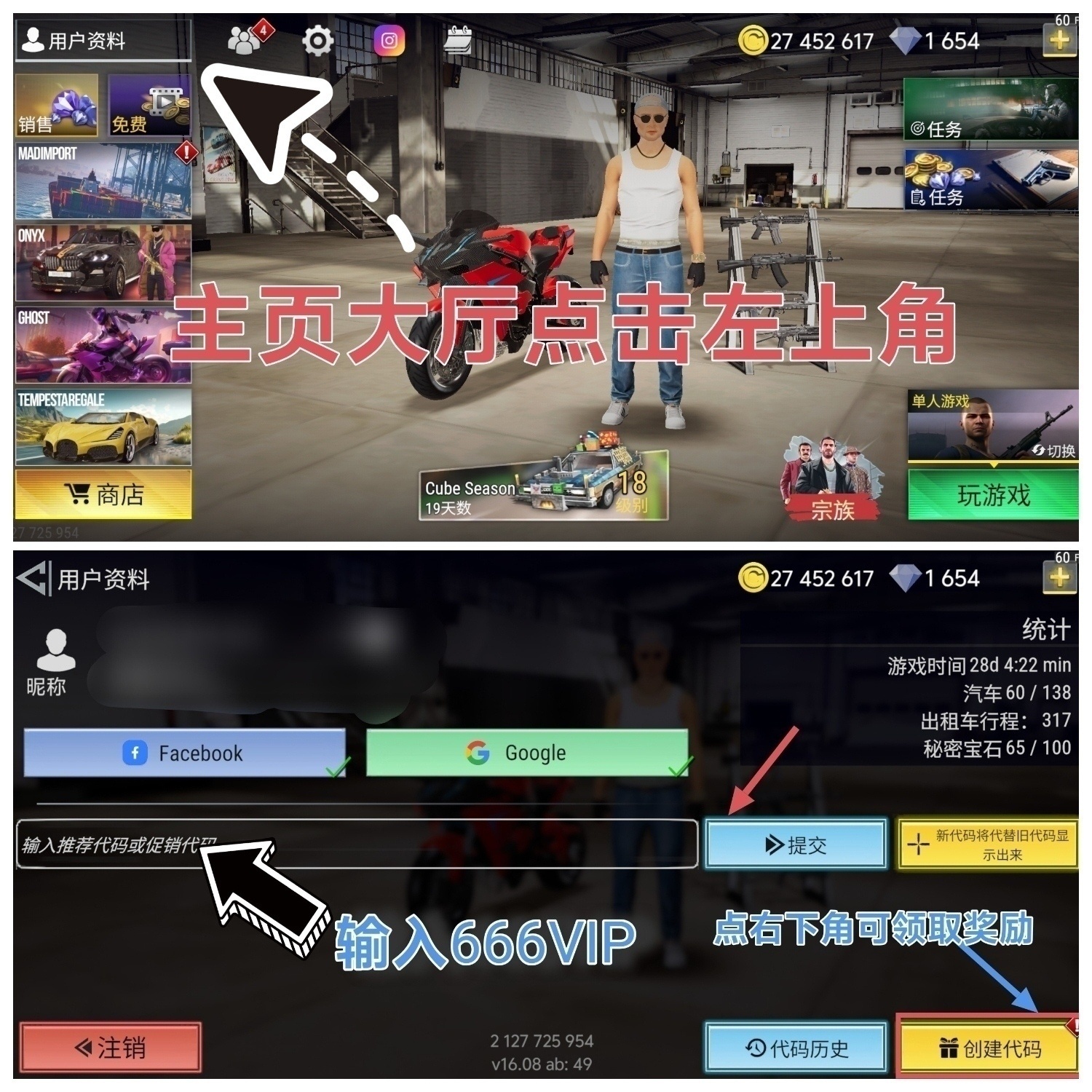 新手兑换码,返回主页大厅左上角用户资料界面输入 666 vip 即可领取15w金币和225钻石