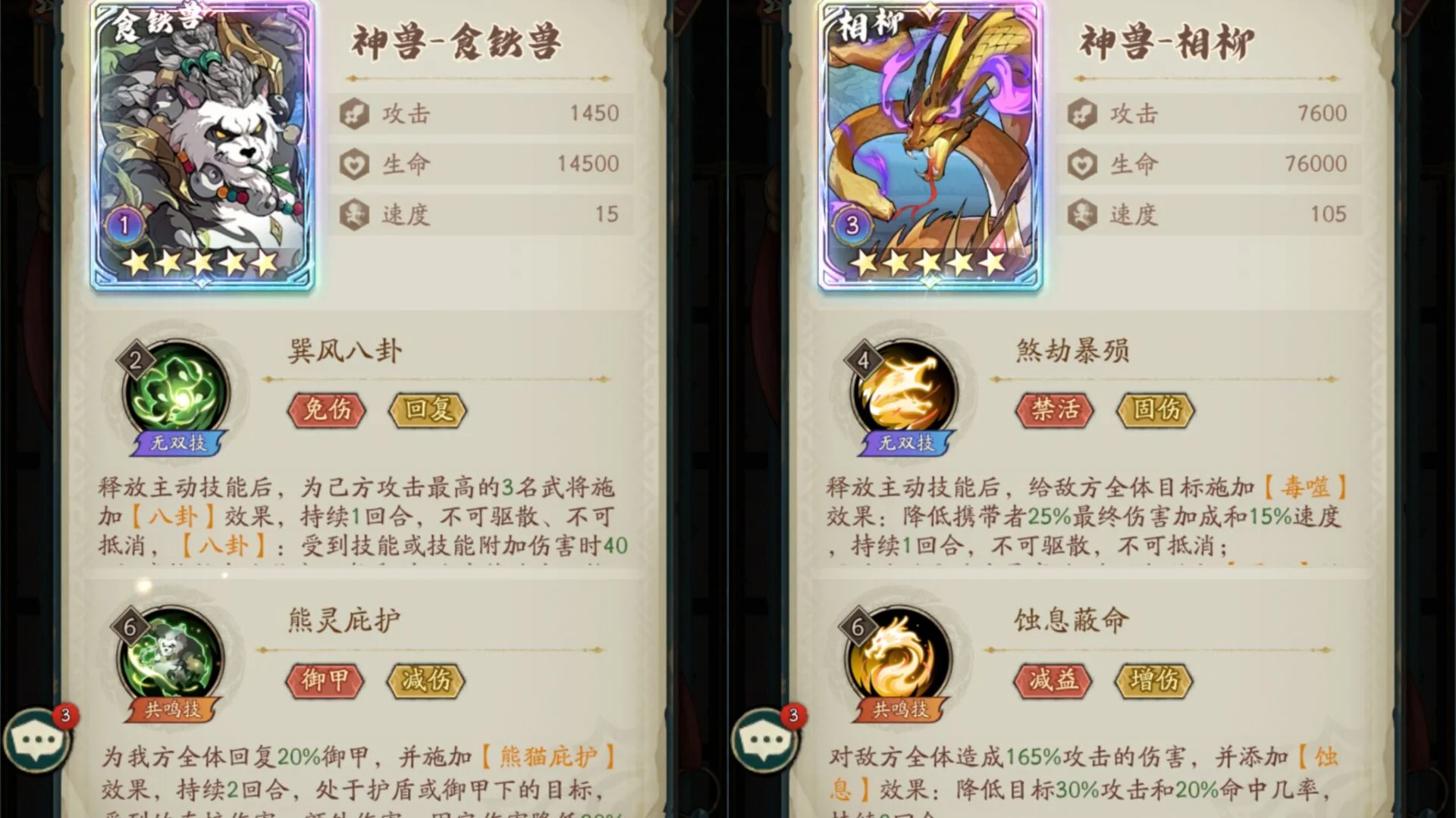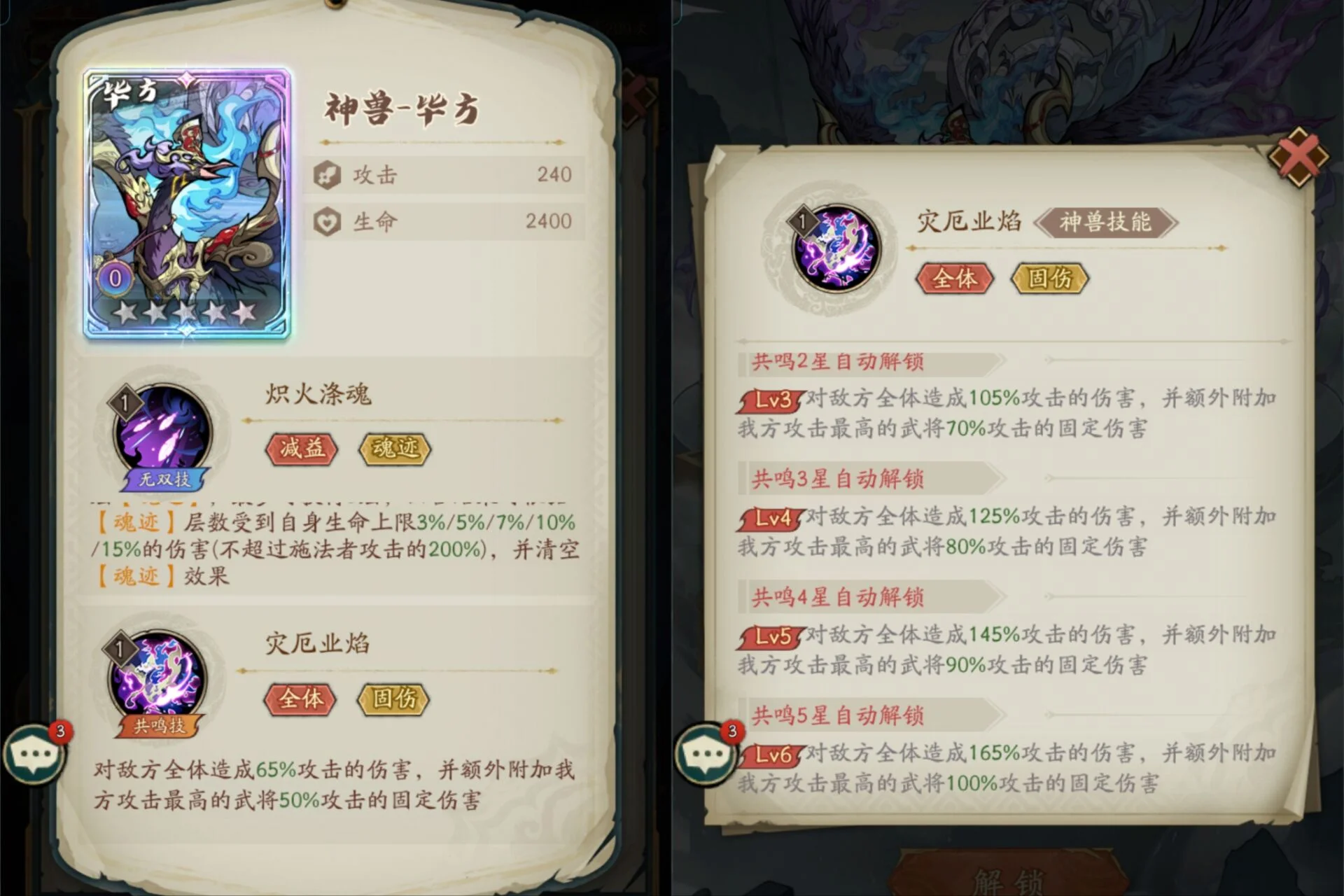 总结:毕方是目前唯一的可以降低敌方伤害减免的神兽,可以说是妥妥的肉队克星了。