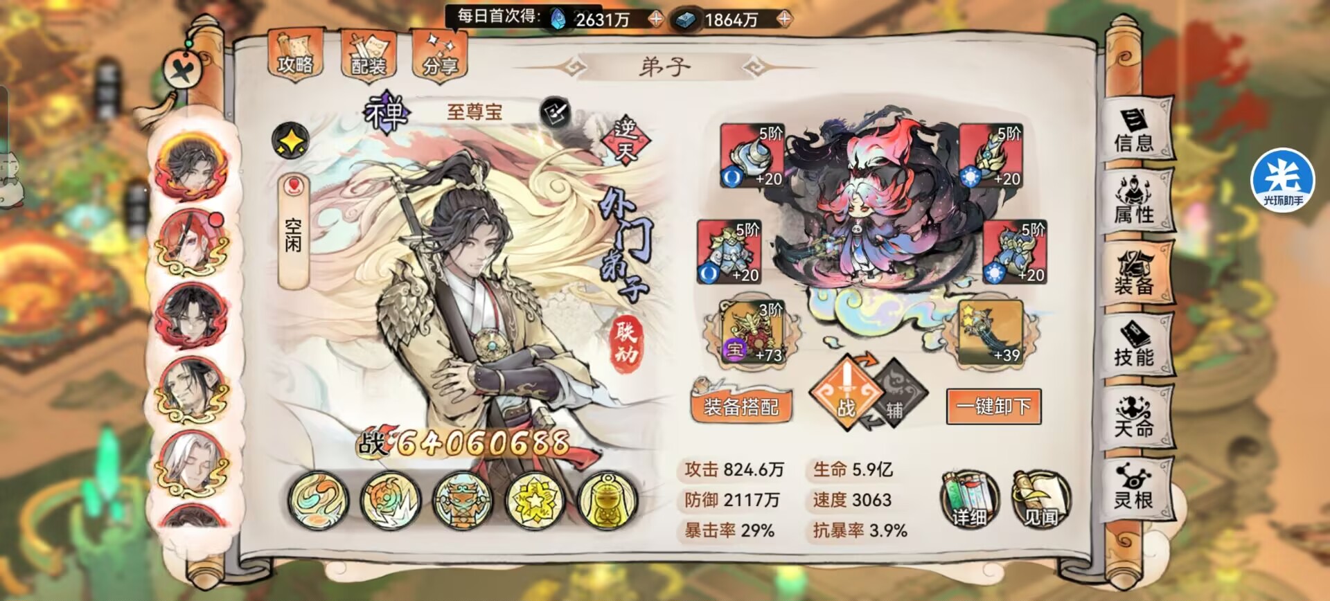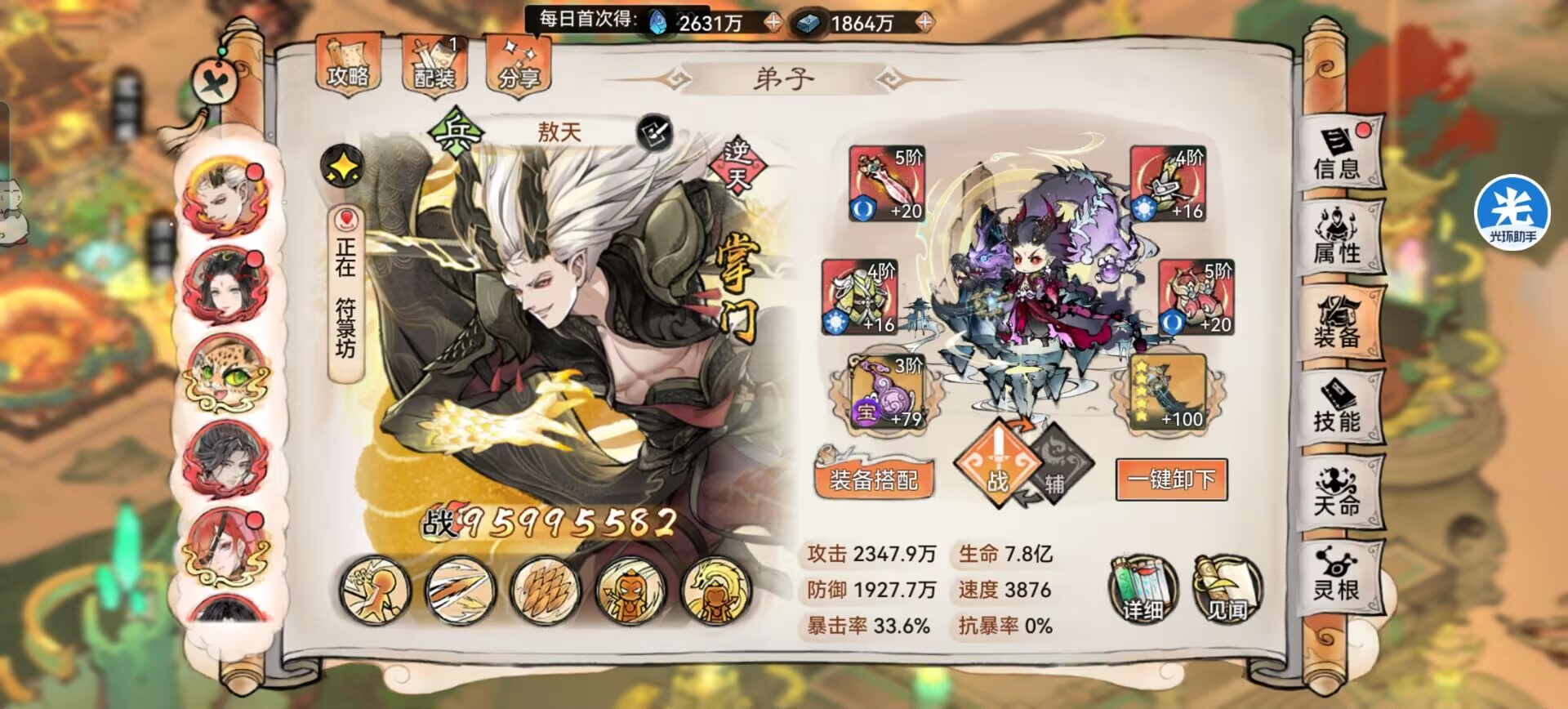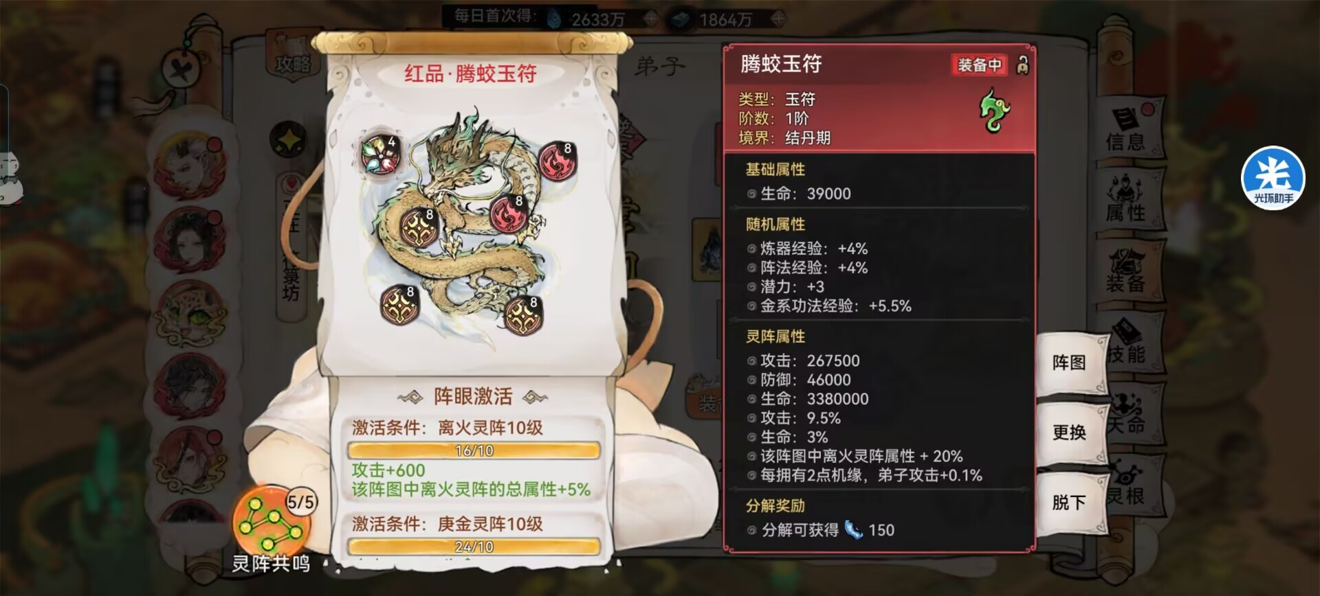 另外本命法宝【养魂葫芦】复活起来提供的攻击和防御配合军阵属性加成,面板属性直接膨胀。