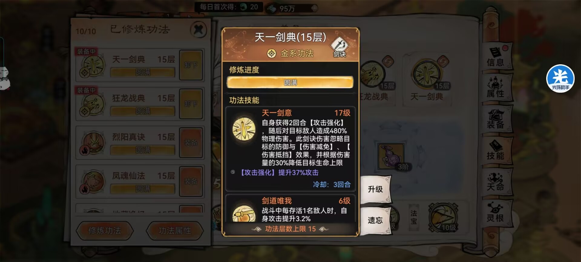 ①功法推荐:凤魂+天一。