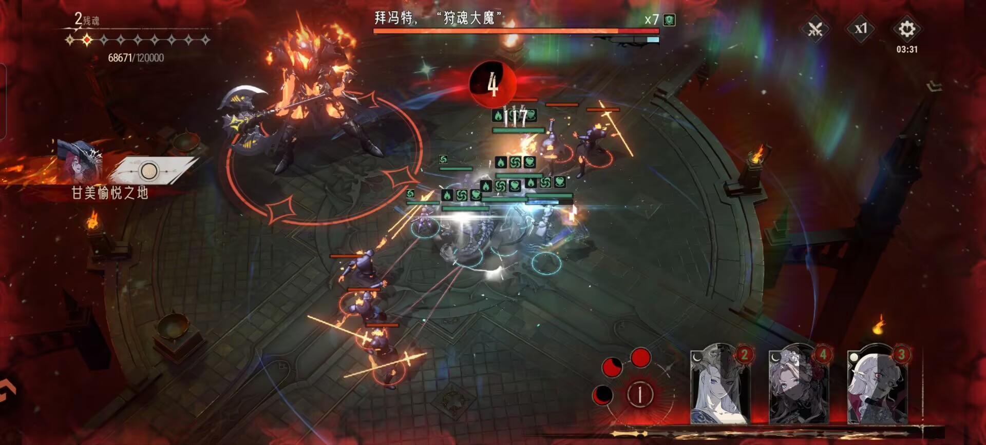 打法思路和上面一样,达尔卡罗和拉米娅优先清小兵,别让大魔血压值上来。