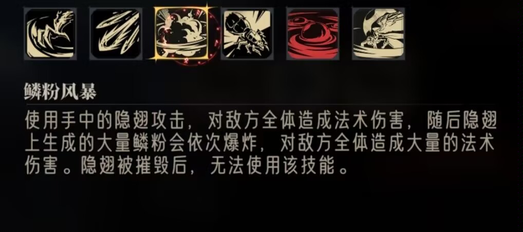 造成大量的法术伤害,随后【隐翅】上会生成大量的鳞粉依次爆炸对我方全体造成大量的法术伤害。