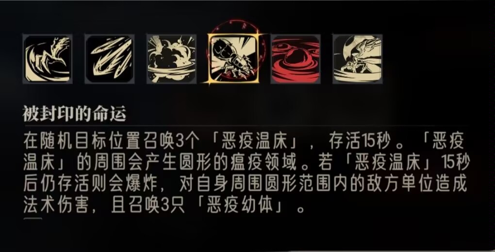 2:第二个技能核心难点:【被封印的命运】分析总结昔拉会在随机的位置召唤3个【瘟疫温床】。