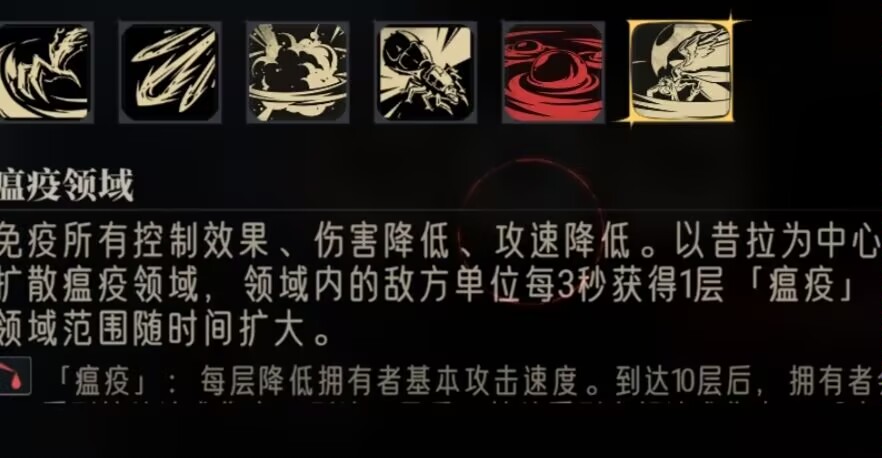 我们在领域内每3秒就会获得1层【瘟疫】。