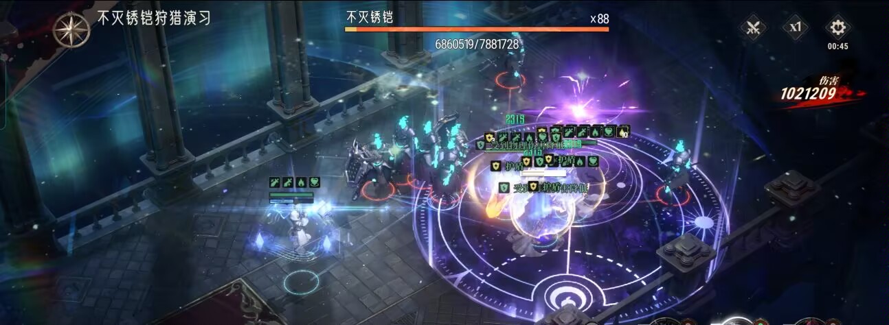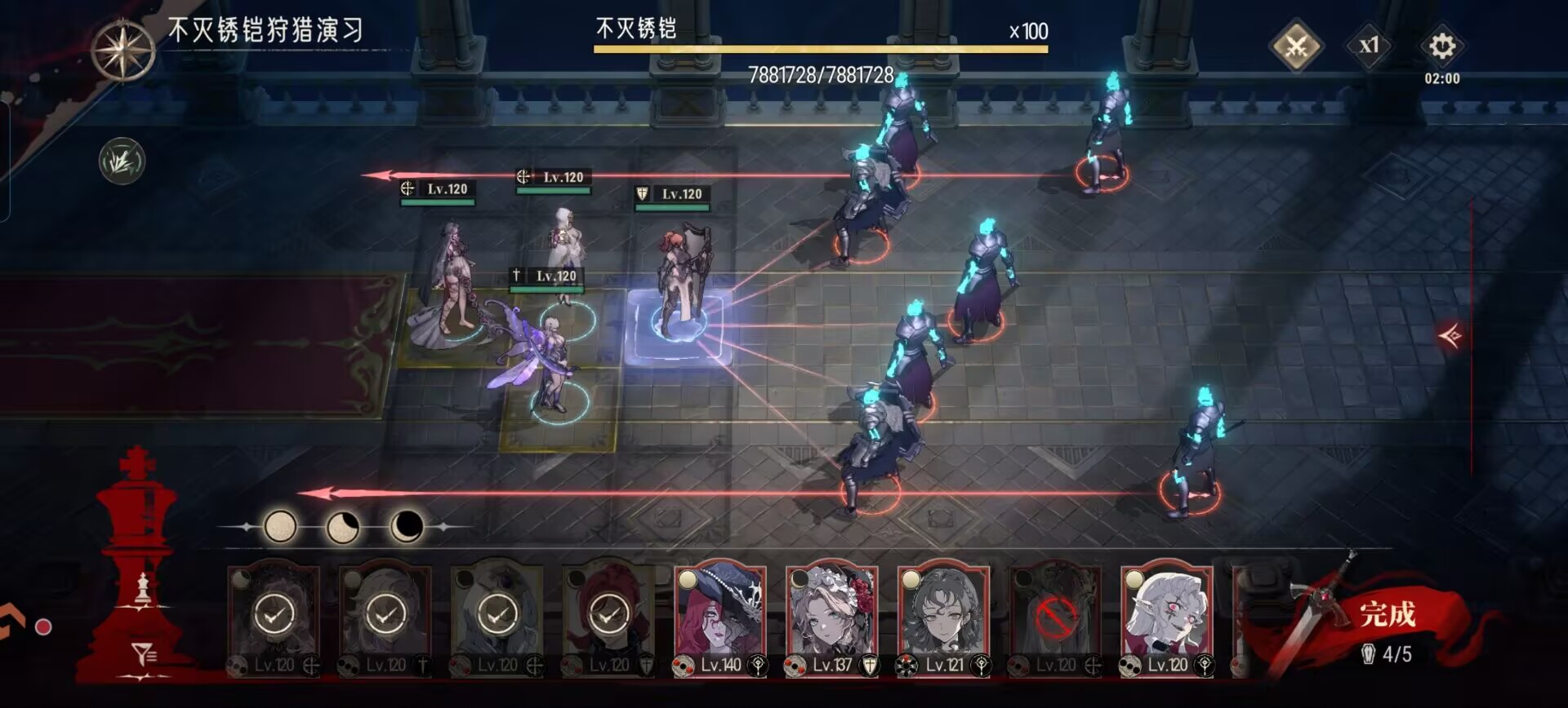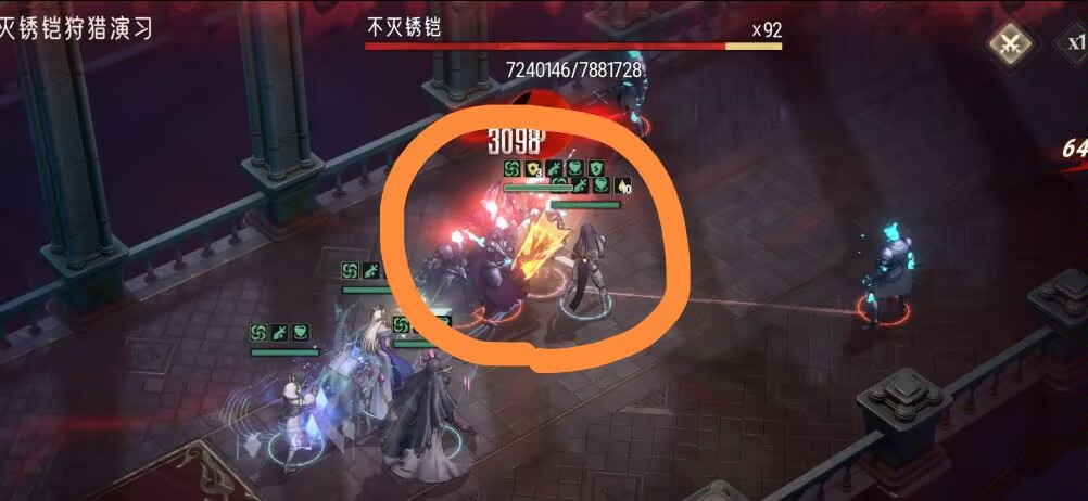 大哈缇+阿加雷斯+琪安德三大范围dot输出是打这关的最核心的角色,能够对敌人造成成吨的伤害,而且关键是对面5个近战敌人站在一起,我们可以最大化打满伤害。