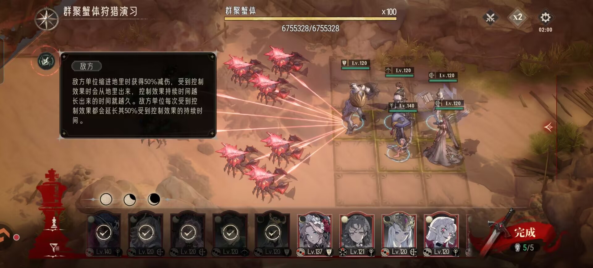 ②该关特点就是:螃蟹会缩进地里,提升50%的减伤,我们只有释放控制效果,螃蟹🦀才会从土里出来,从而祛除减伤。