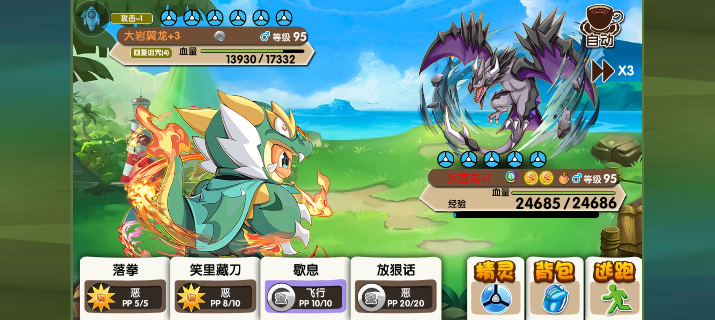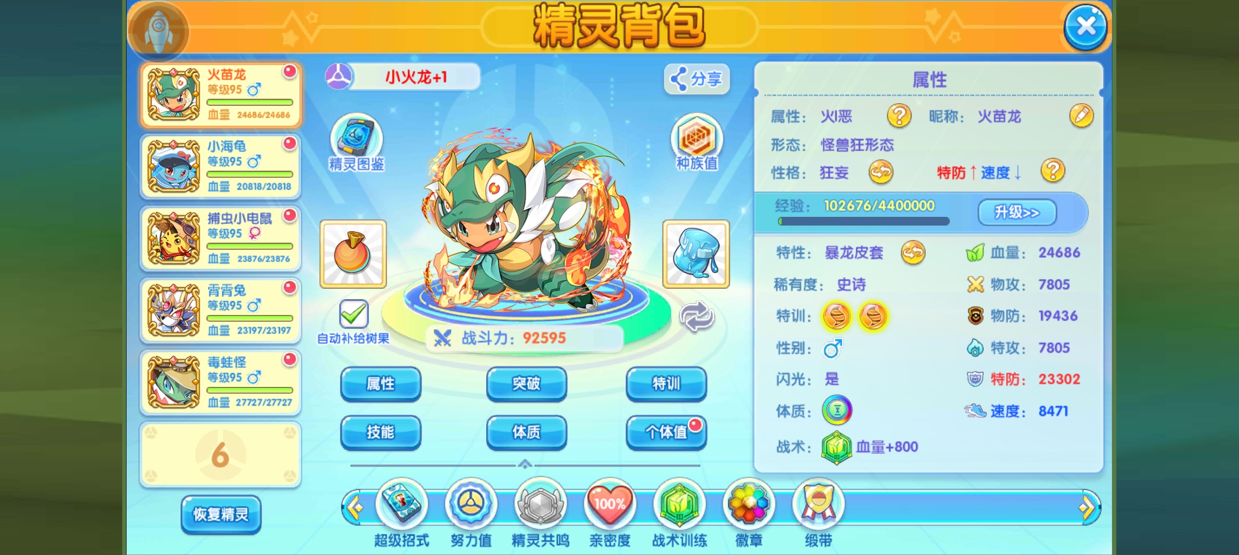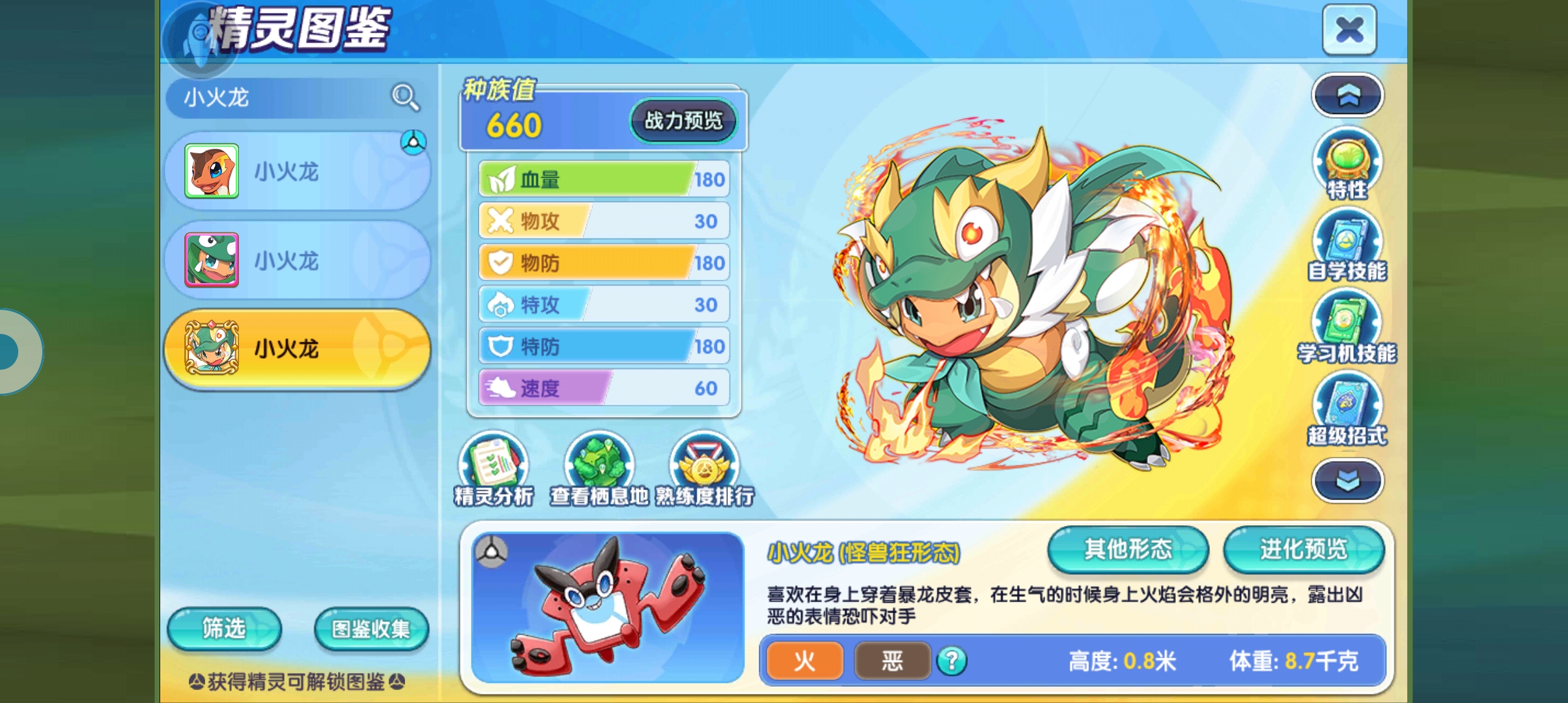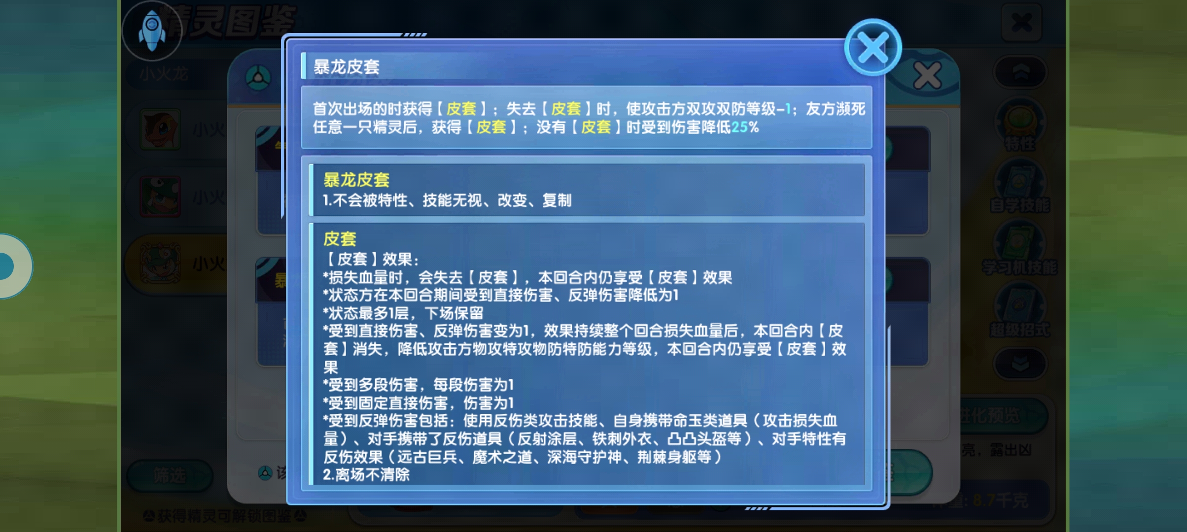 说白了,这个小火龙的机制就是替队友挡致命伤害,挡住之后皮囊消失,对方能力降低,如果这个时候对方聪明一点,赶紧切人,那这个皮囊就没啥用了,就是挡了一刀而已,如果对方对自己的伤害相当自信,接着打小火龙,由于对方的能力降低了,所以伤害比原本是要降低不少的,那么这个时候如果我方你够承受的起对方的伤害,使用放狠话后手逃脱然后接着上一个拥有抓人效果或者是强行输出的精灵,用来反手压制对面是可以的。这个特性的机制就这样,可以说是相当的特殊如果设定成每一次上场获得皮囊的话,那对方干脆就别打了,直接肉盾互切致命伤害小火龙上场吃一下,对方当场崩溃,但是如果设定成像,现在这种的话,变成首次登场获得皮囊,那么接下来队友死一只重新获得,这就相当尴尬了,没必要疯狂的去送死队友,然后让一个肉盾做无用功,这是相当蠢的操作,如果一整局下来,自己的五个队友全部能够保持健康血量的话,那就是胜利,如果保不住的话,那也没什么,因为自身重新获得皮囊了,但是最关键的仍然是需要保持队伍的整体健康,因为自身受到损失,血量效果时,皮囊效果将会没有,自身就会变成一个拥有回血效果的沙包而已。想要反手应对对面的话,要么毒,要么使用咒语,可以说是相当的费劲,一点用处都没有。