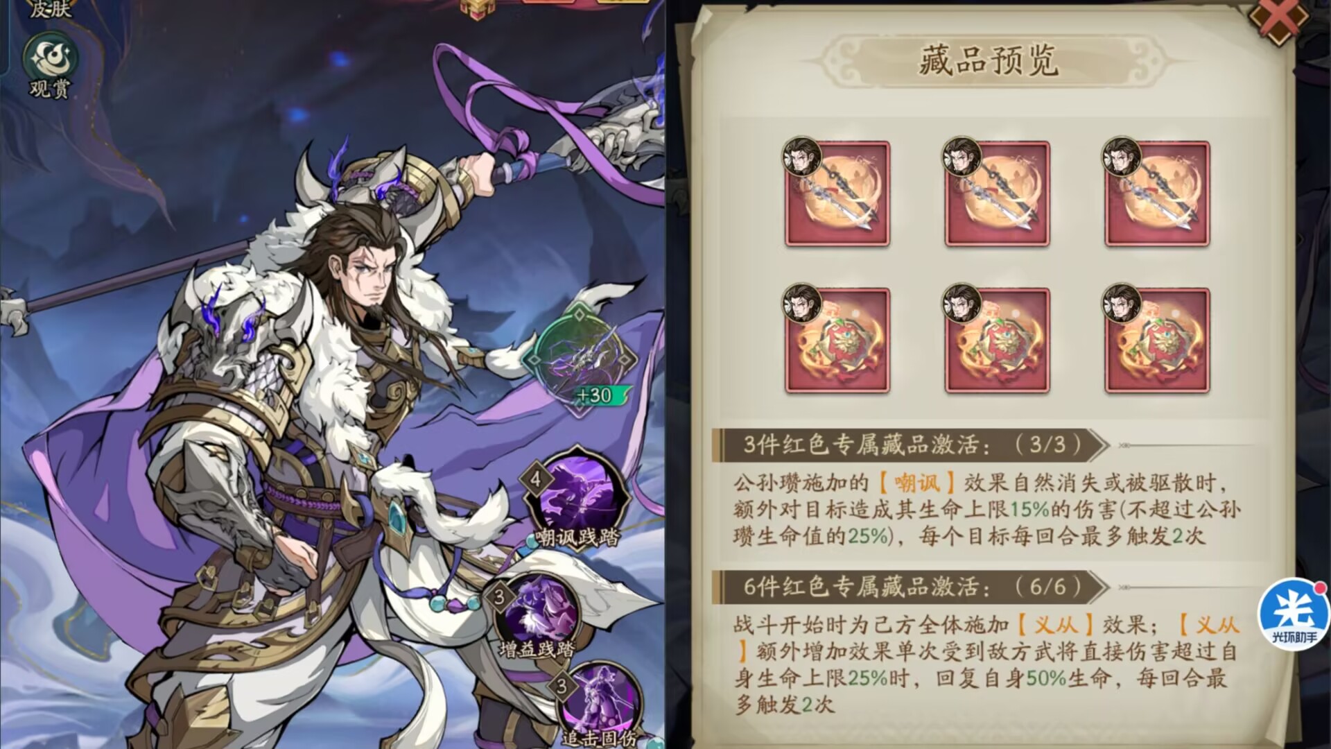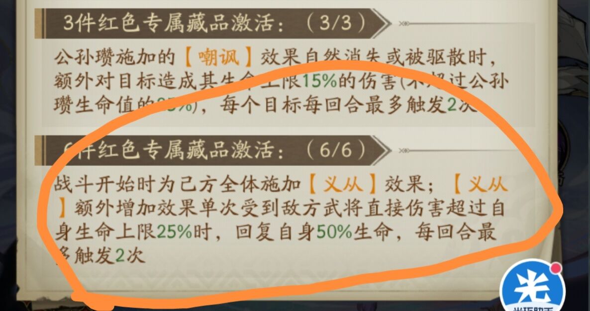 ②6红藏是质变:公孙瓒减伤效果提升到全体,不在是给2名队友施加,同时还有高额的回血效果,单次伤害超过25%生命,就可以回50%生命,相当于直接回满,而且每回合可以触发2次