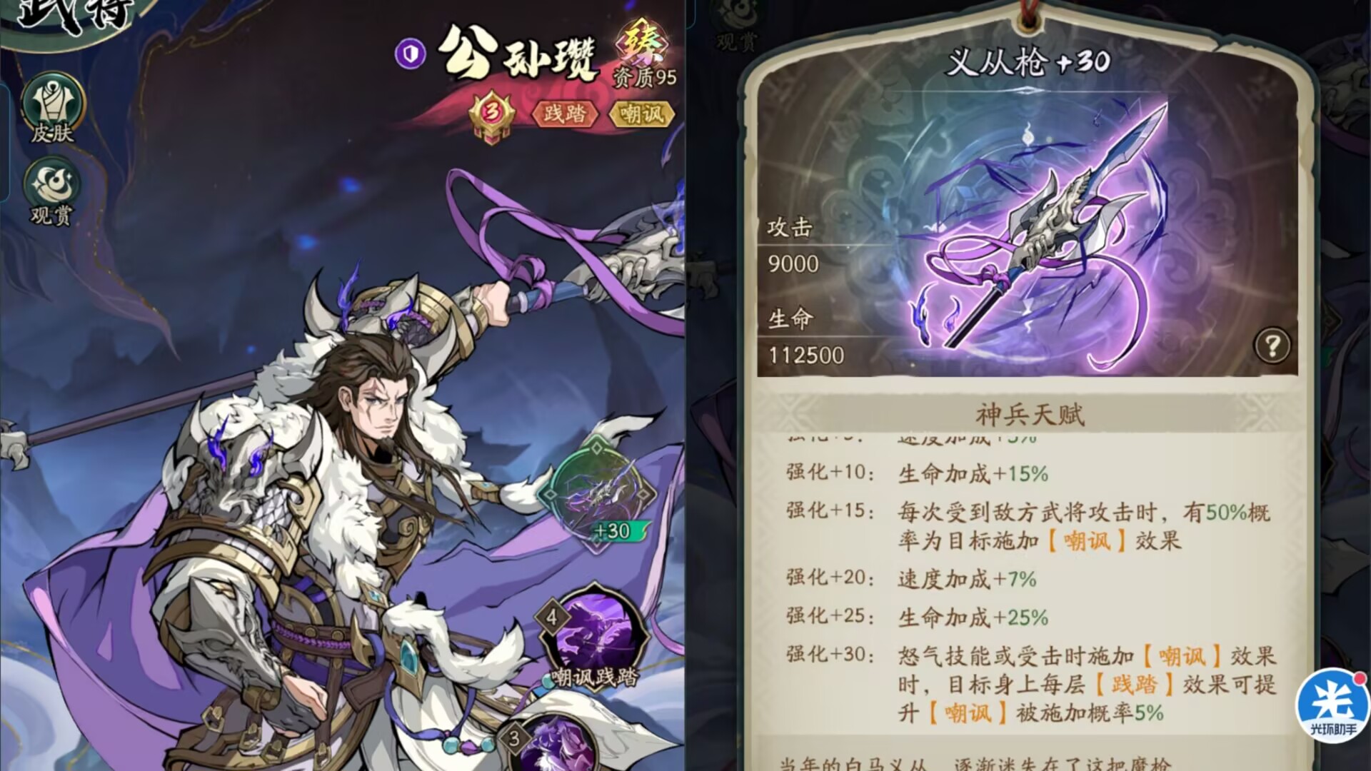 总结:神兵主要就是加强嘲讽的概率,另外让公孙瓒受击也可以给目标施加嘲讽效果,加强公孙瓒的控制能力。