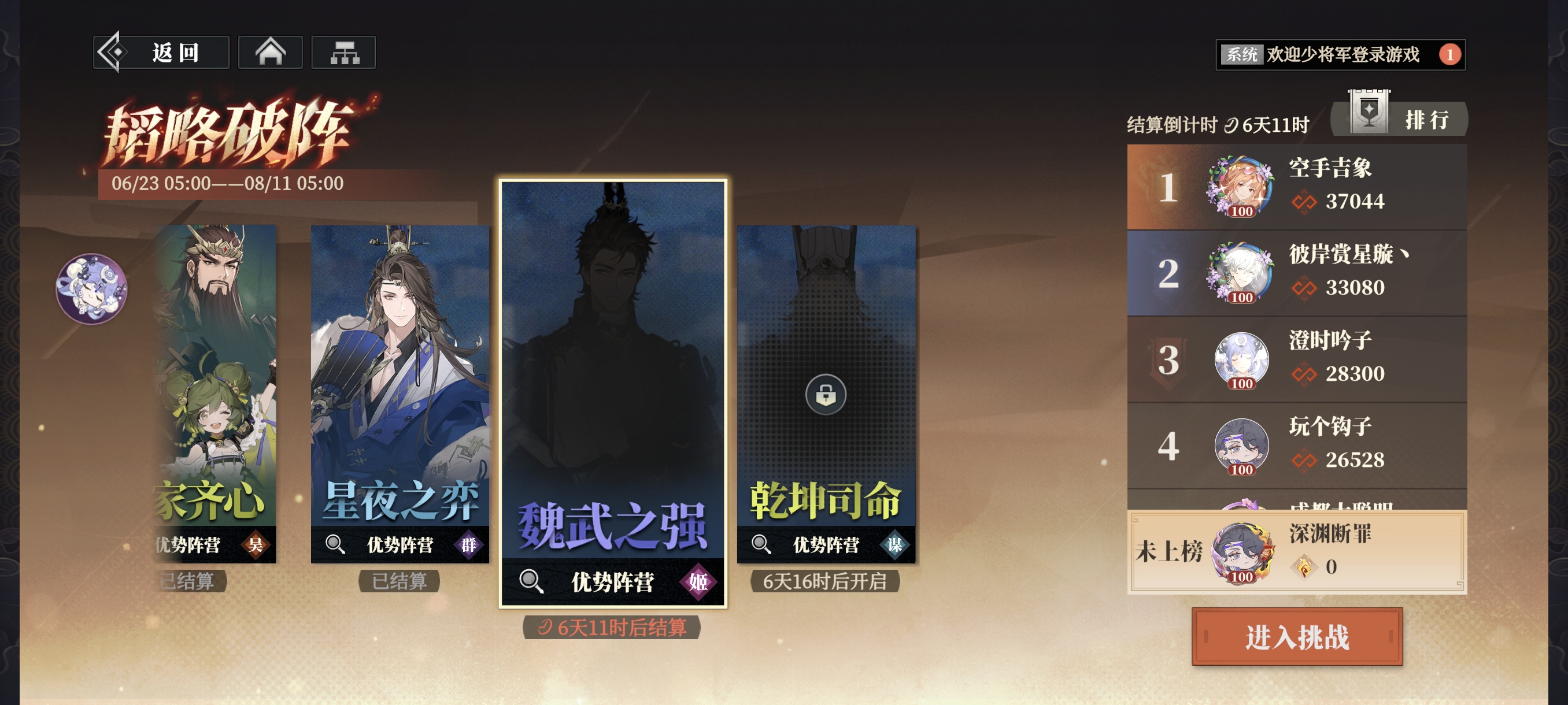 大家好,这里是深渊断罪,今天为大家分享一下韬略破阵低配满星攻略,有这方面需要的小伙伴可以进行参考,欢迎回帖讨论。