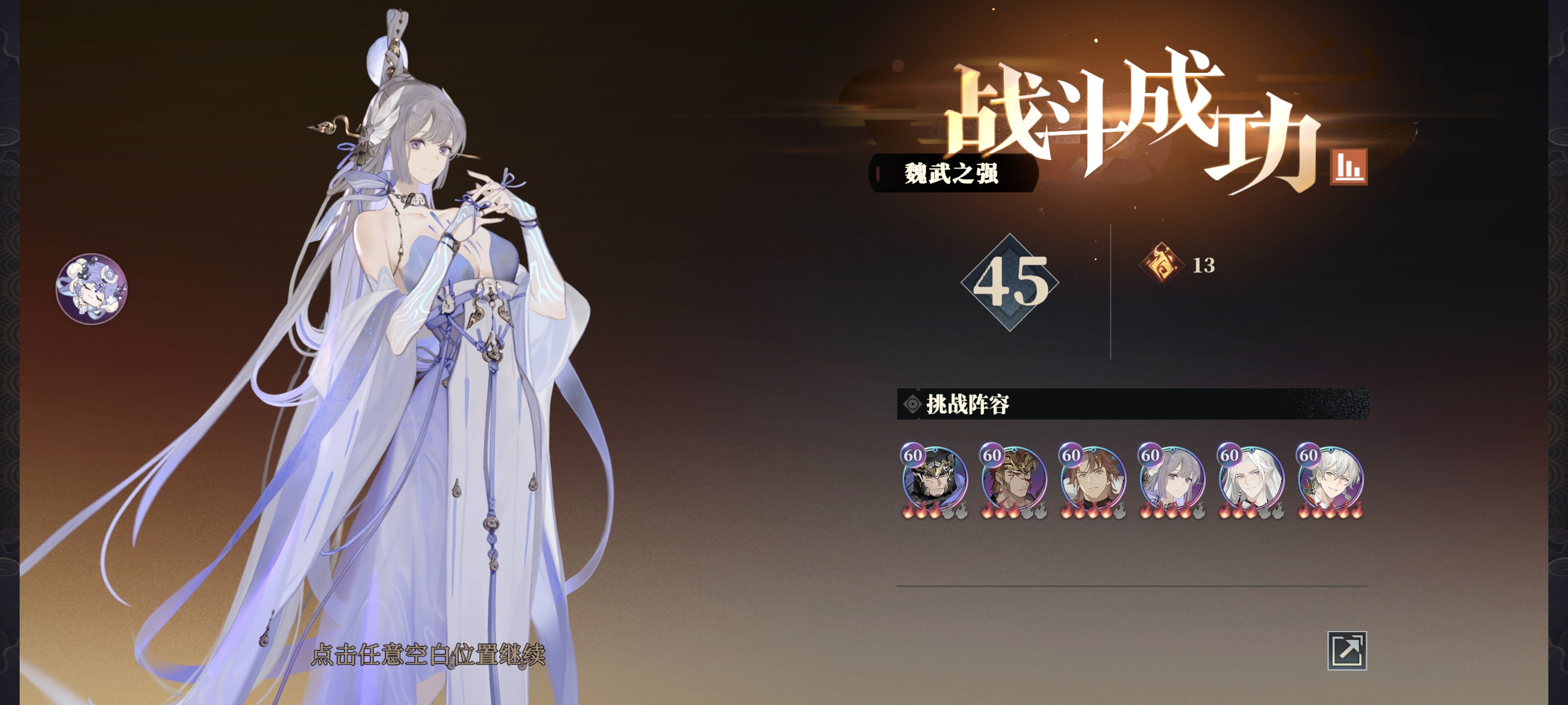 魏武军阵在曹操每次行动前,会使血量最高和最低的两人平均血量,使我方很难提前对敌方造成减员。