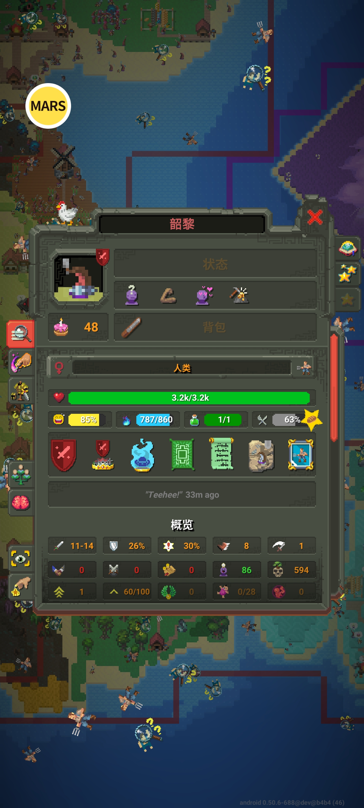 我之前搞过一个半螃蟹,身体还是螃蟹,但思维已经成为跟螃蟹人差不多的存在了。后面我一看,一个个的,要么变成树,要么变成石头