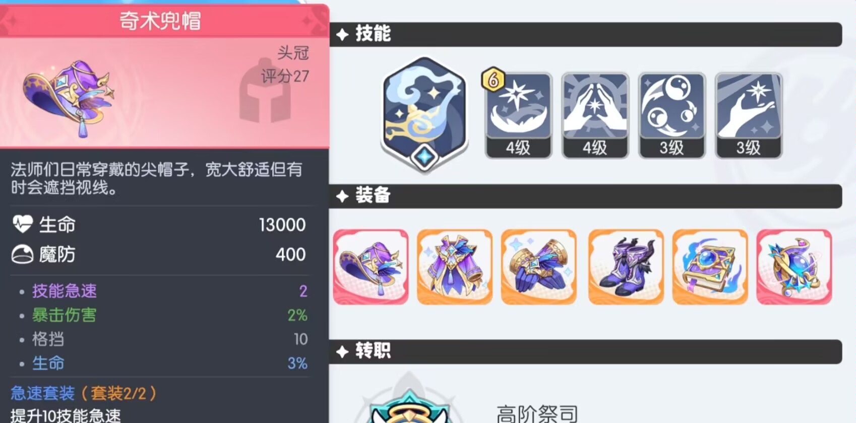 因为奇术套提供技能急速,可以大幅度减少维纳斯的技能冷却cd!对辅助来说是比较重点的一点。