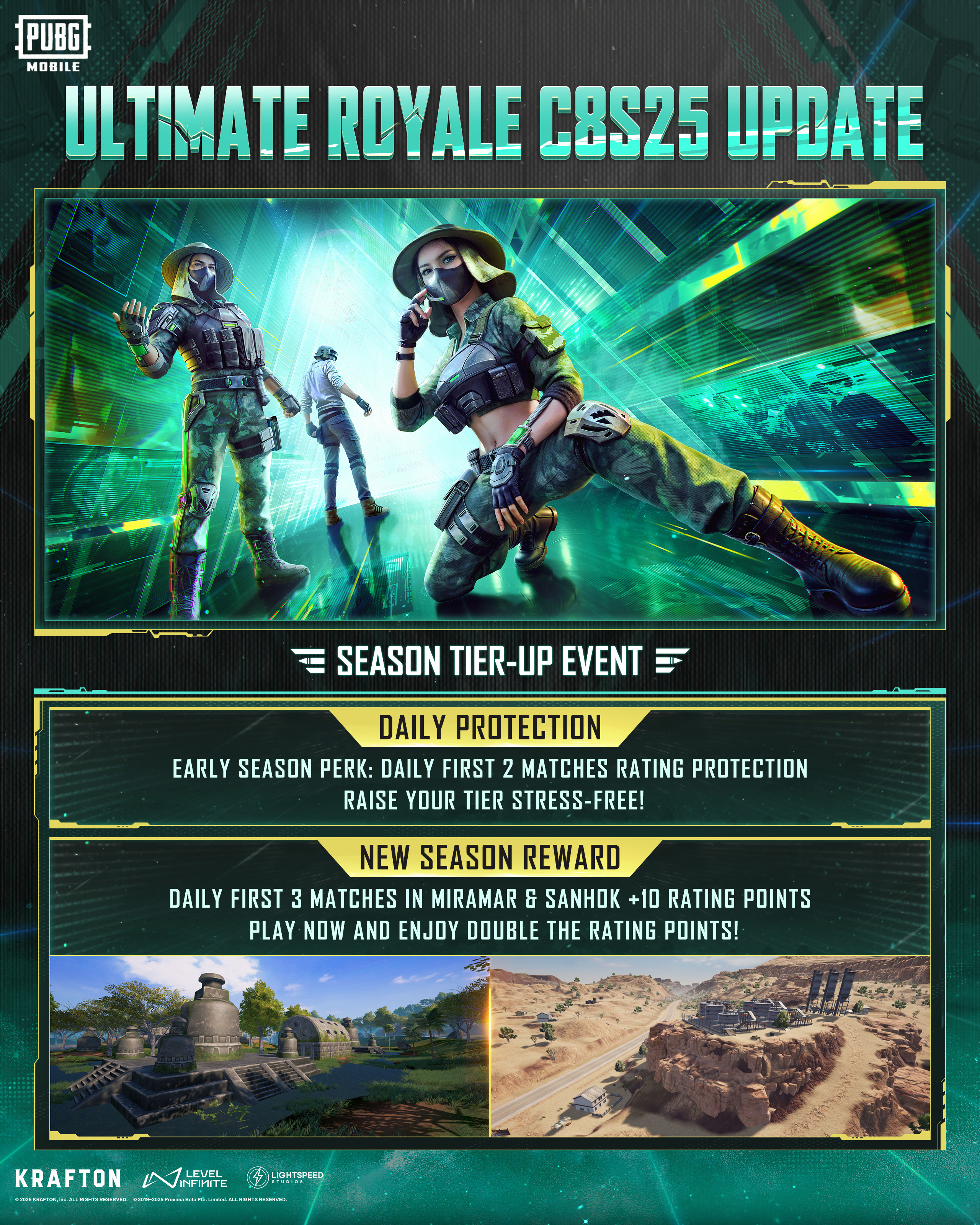 3.9新赛季已上线是泽哦发布于 2025-07-23关注准备好成为终极了吗?《终极皇室》新一季现场直播!💪从现在起到9月2日,在您的前两场每日比赛中享受独家赛季特权,如as:⬇️ 🛡️评级保护🗺️通过在Miramar或Sanhok上玩您的前三场每日比赛获得10个额外积分。不要错过您在排行榜上的机会!