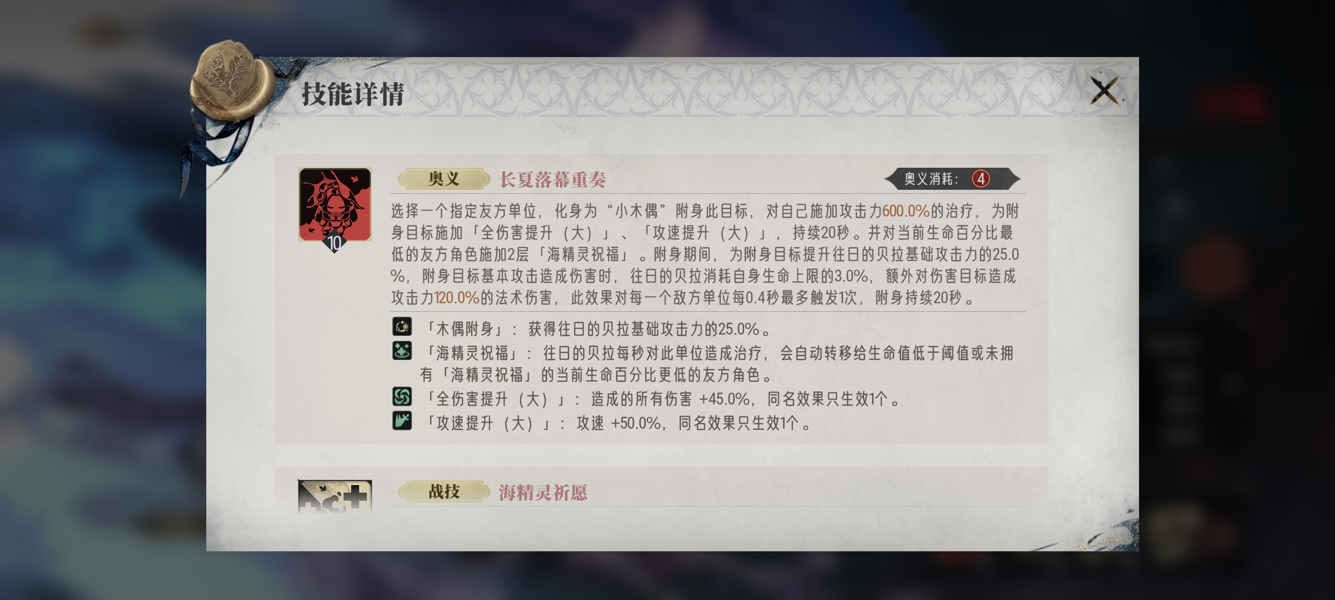 *虽然战技为一次性效果,但【海精灵祈愿】后续还可以从奥义中重复获得!