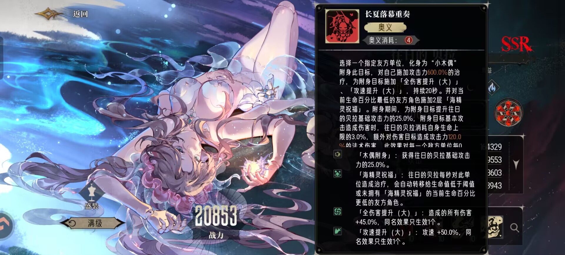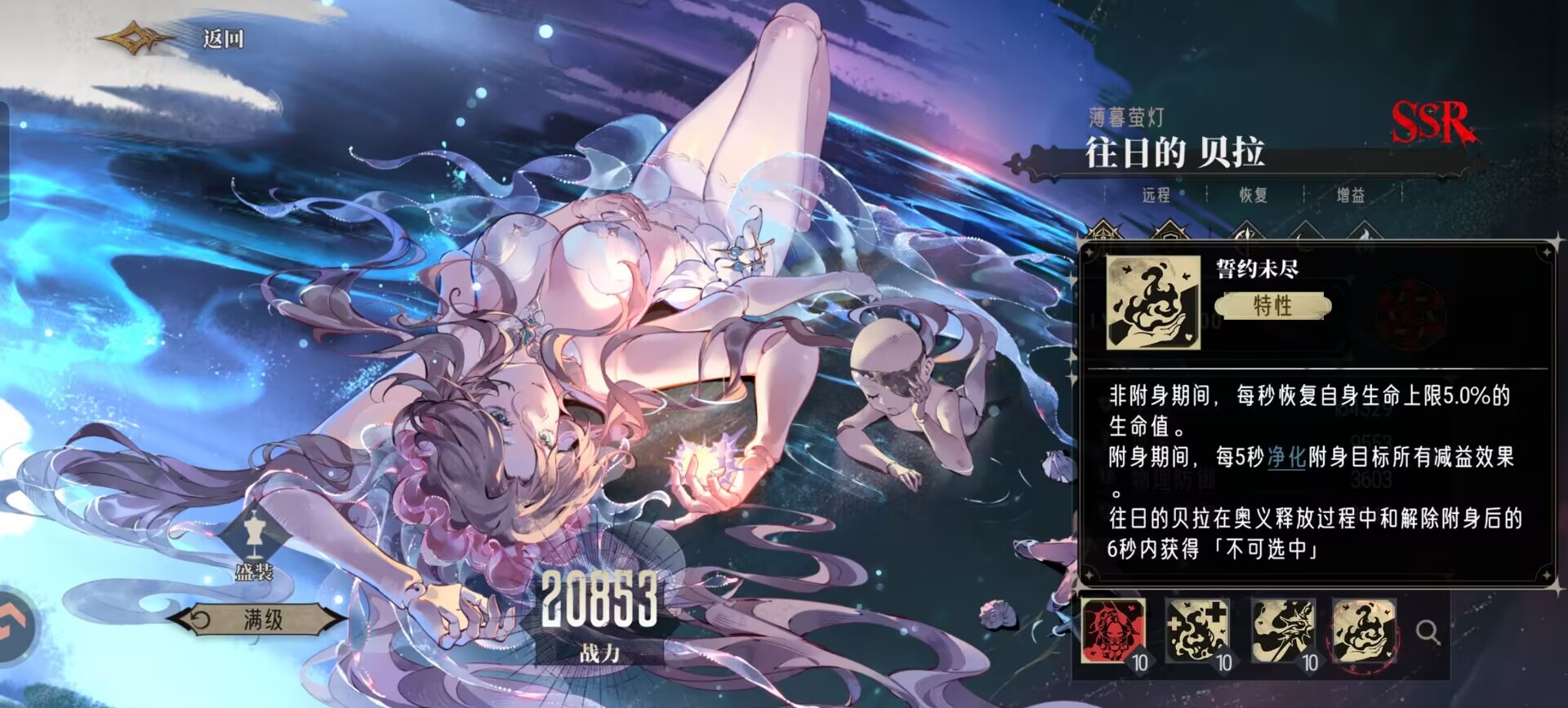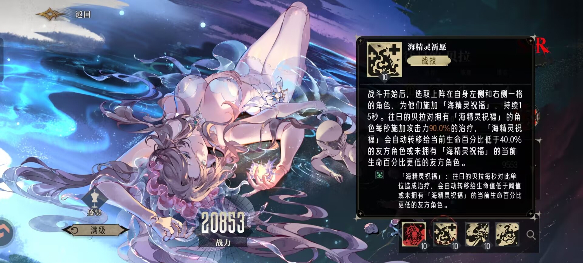 同时在贝拉释放奥义的时候,也能够给生命最低的队友获得2层【海精灵的持续治疗】。