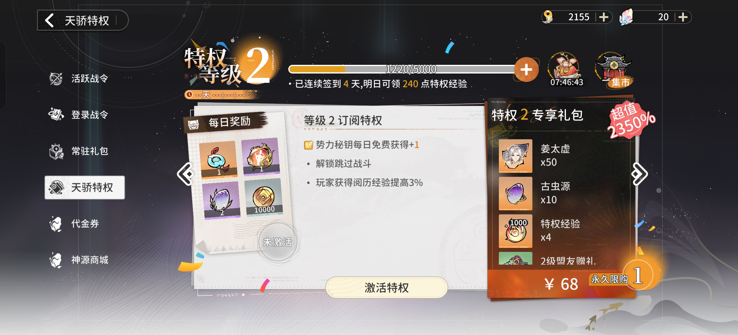 特权4:姜太虚碎片*100
