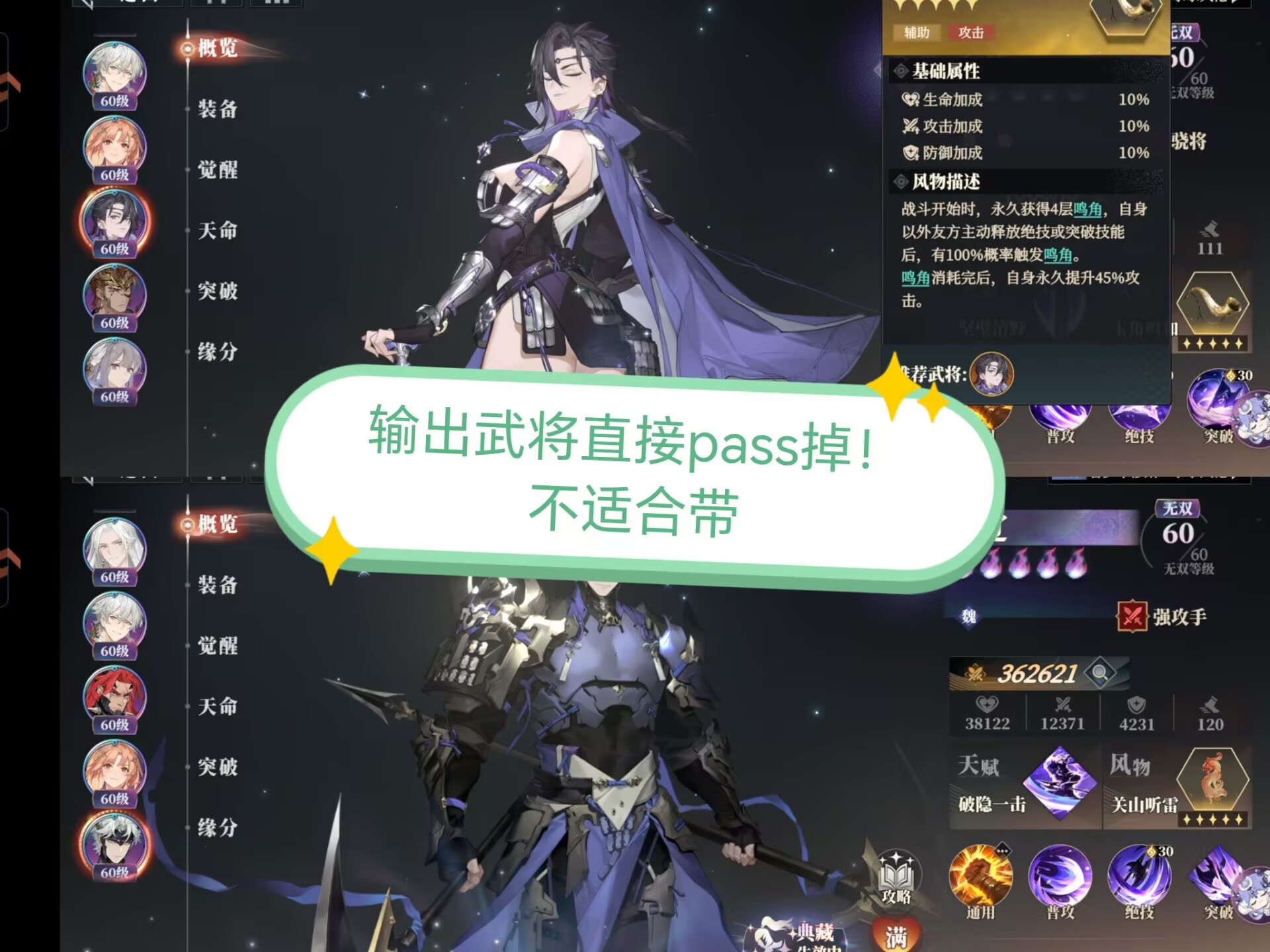 目前来看只有这两个肉盾,适合佩戴这个新风物,其他武将都不适合,总不可能拿一个输出去带这个风物吧!