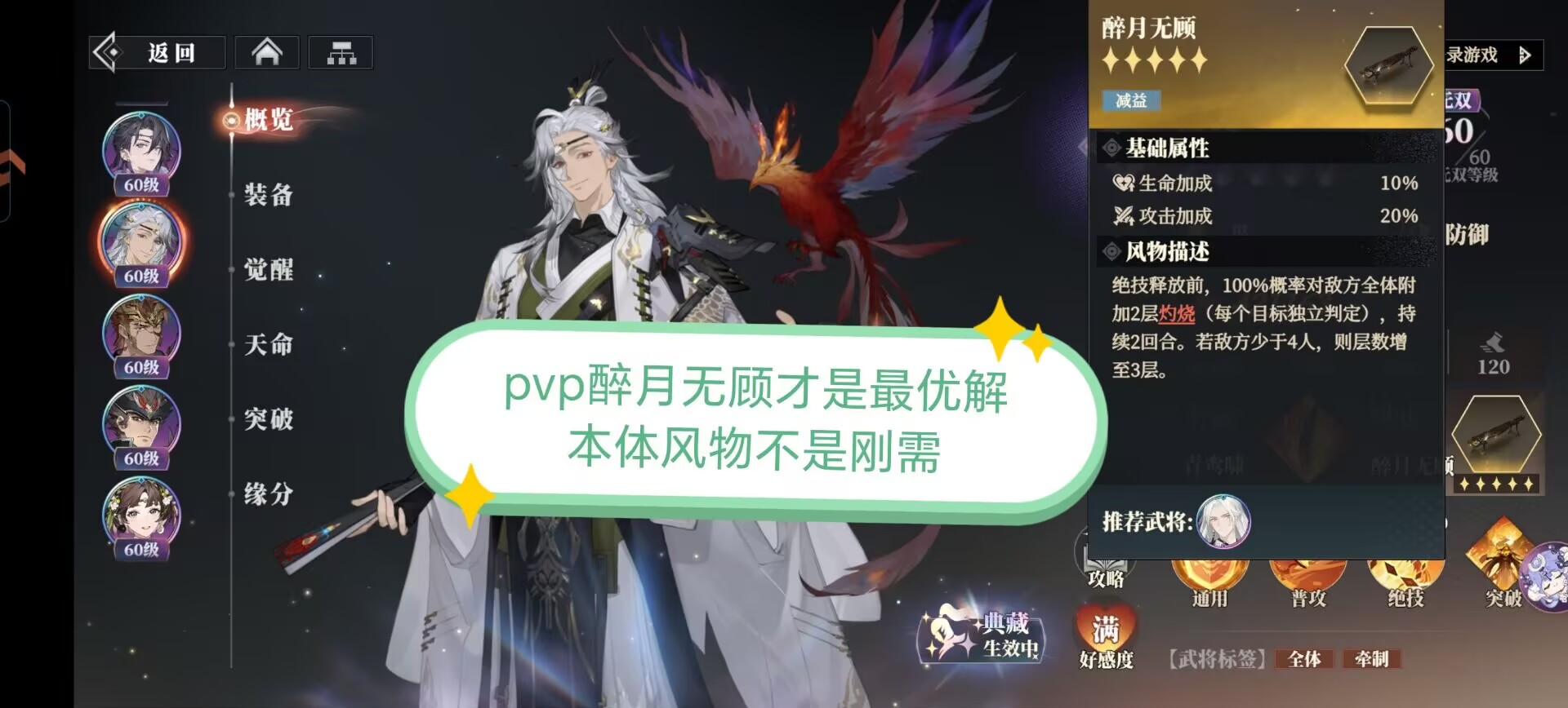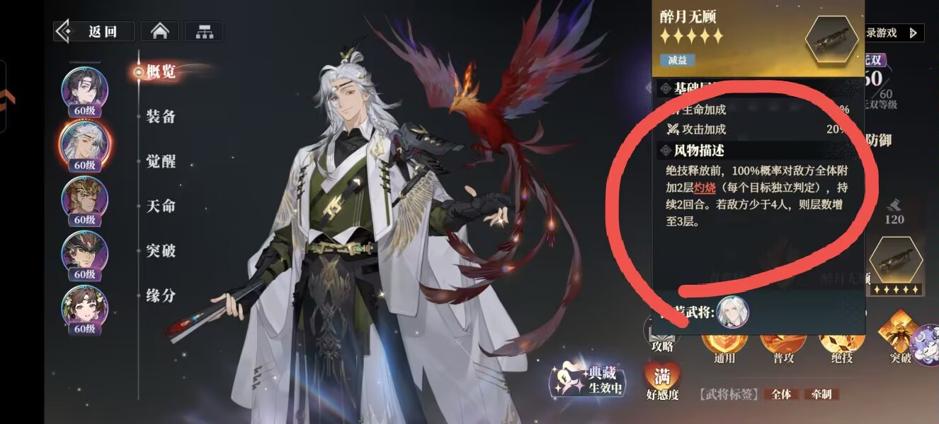 原因就是可以让铁锁buff更好的给敌人维持上因为醉月无顾开局直接可以给全体敌人叠灼烧