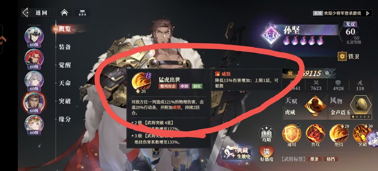 ②孙坚:绝技可以对一列敌人造成威慑负面,从这点来看孙坚也是以考虑带这个风物的。