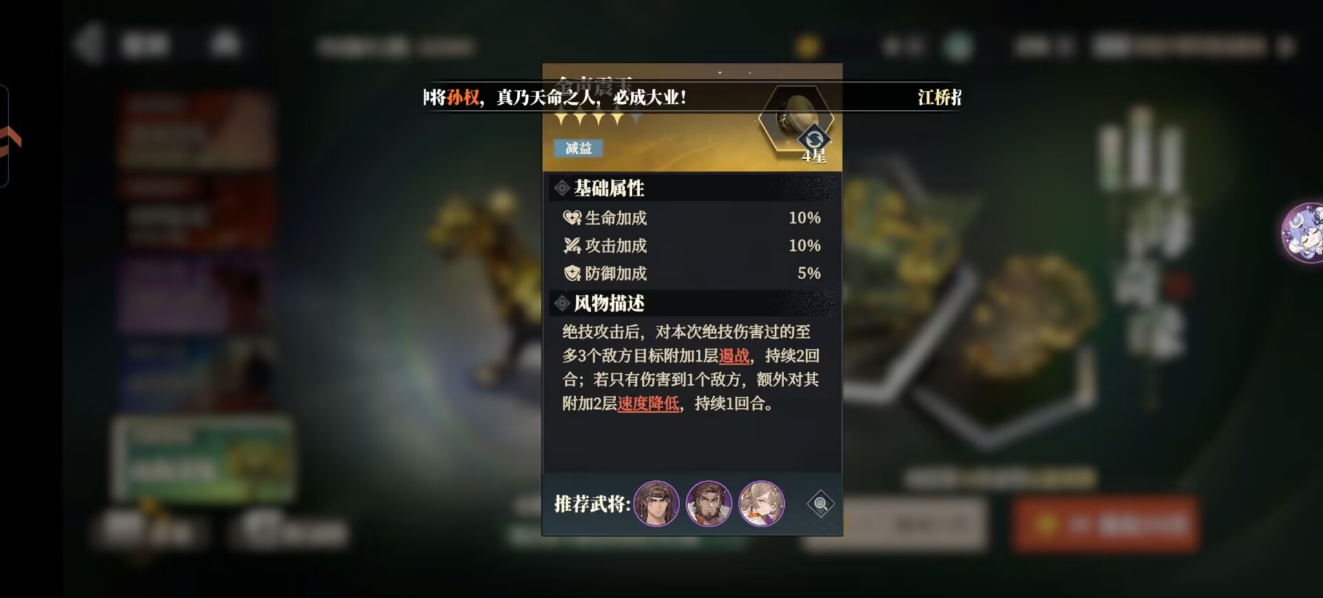 总结:配合让30%的生命加成,是可以极大提升佩戴武将的生存力的。