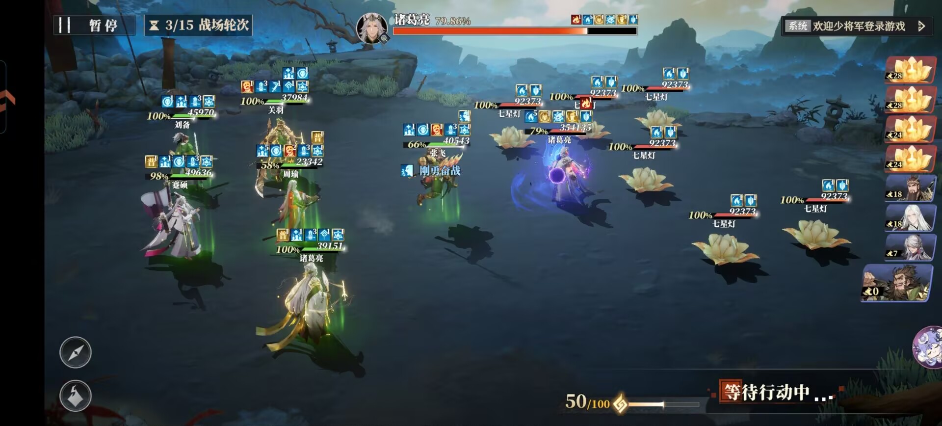 ⭐但是问题来了:因为很多pvp都带刘备或者甄姬非常泛滥!风物都带:空谷顿音。导致庞统的挂上的铁锁buff会被第一时间抵挡或者是被驱散!