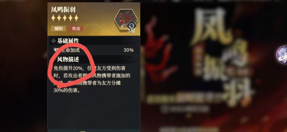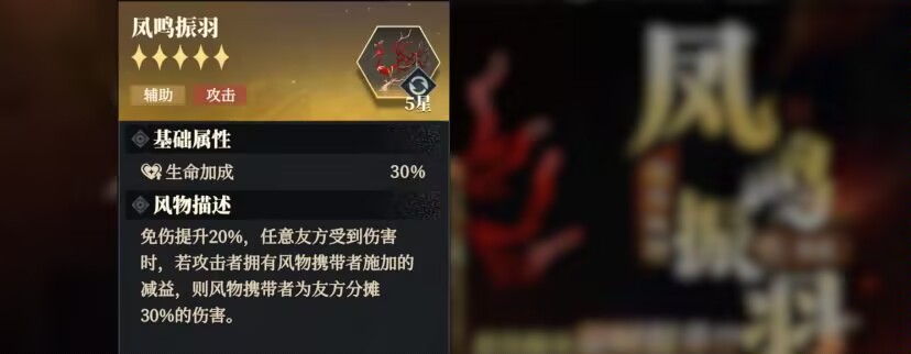 如果敌人有这个风物的佩戴者施加的减益,只要我方任意的队友受到伤害,风物佩戴者就可以给队友分摊伤害,最大可以分摊30%的伤害