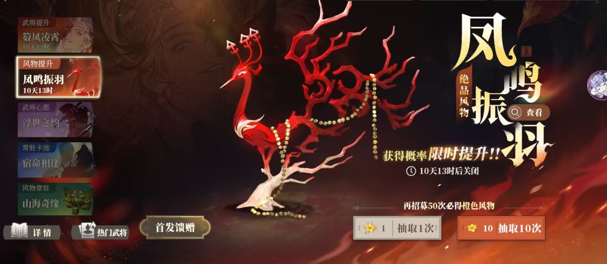 二:【庞统风物:凤鸣振羽】抽取建议。