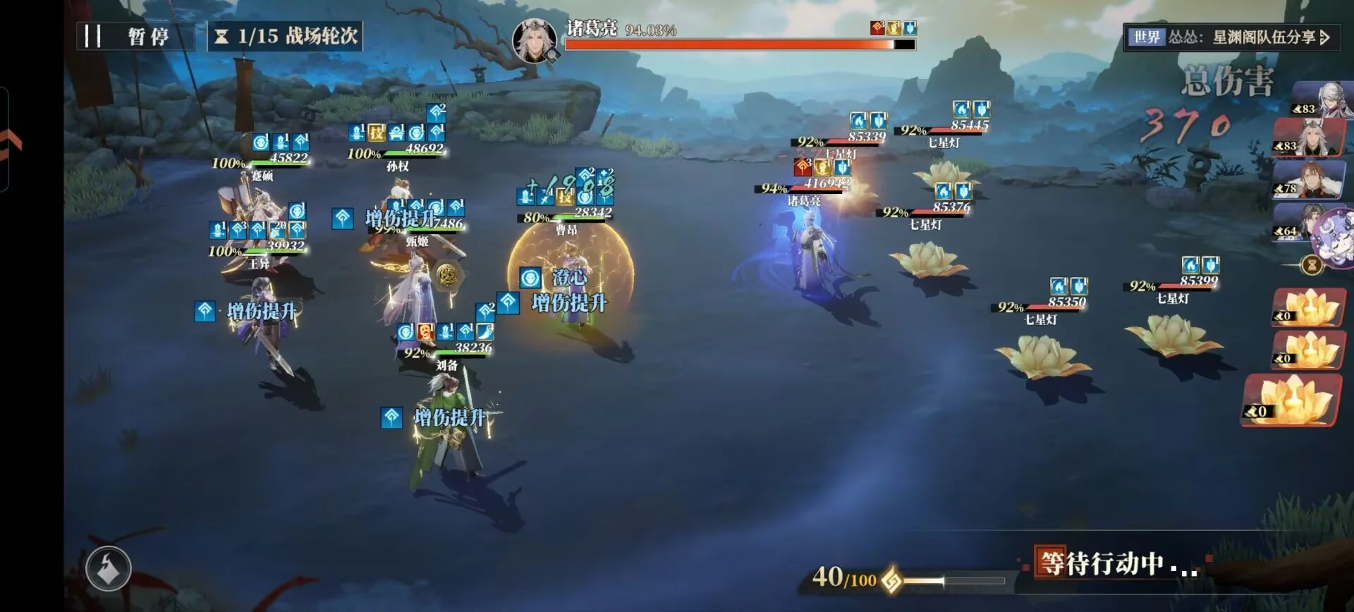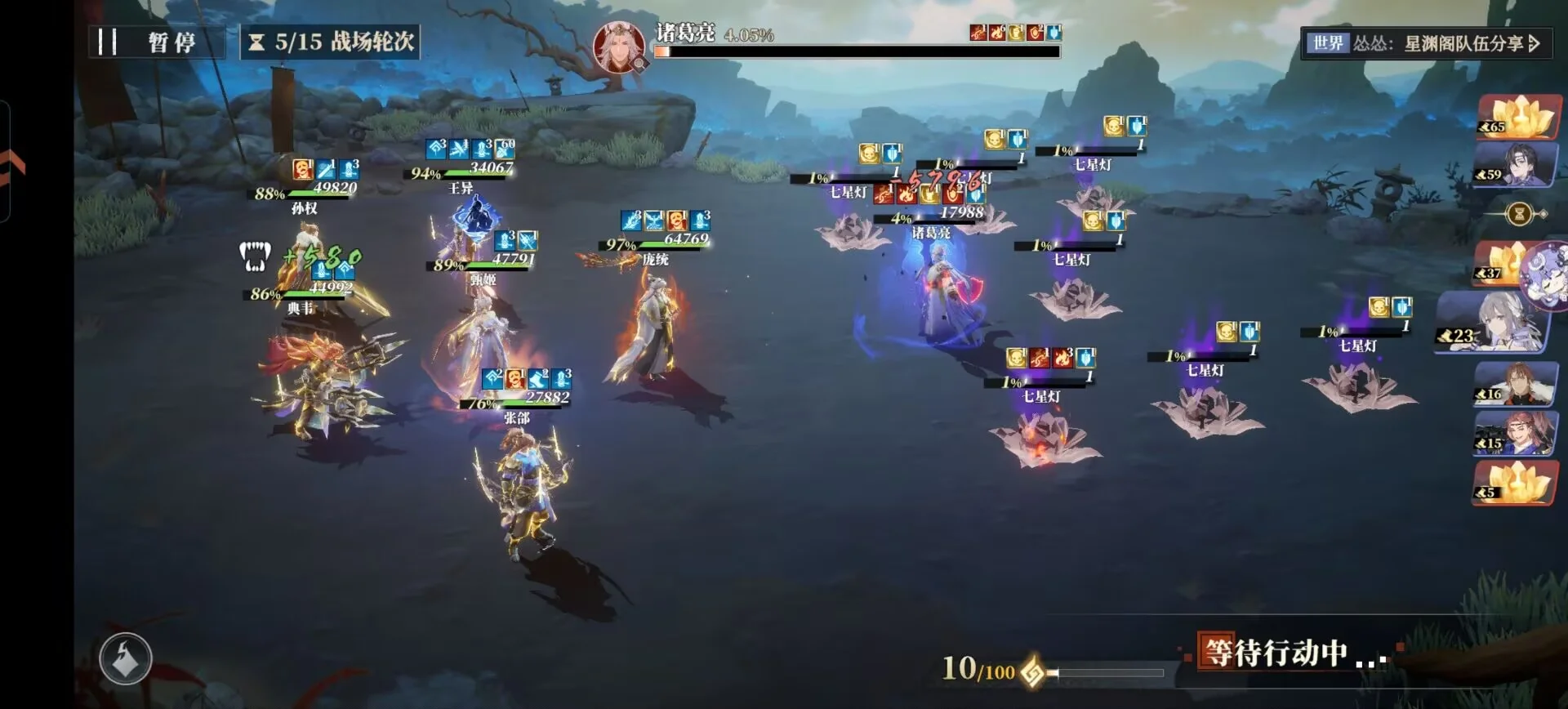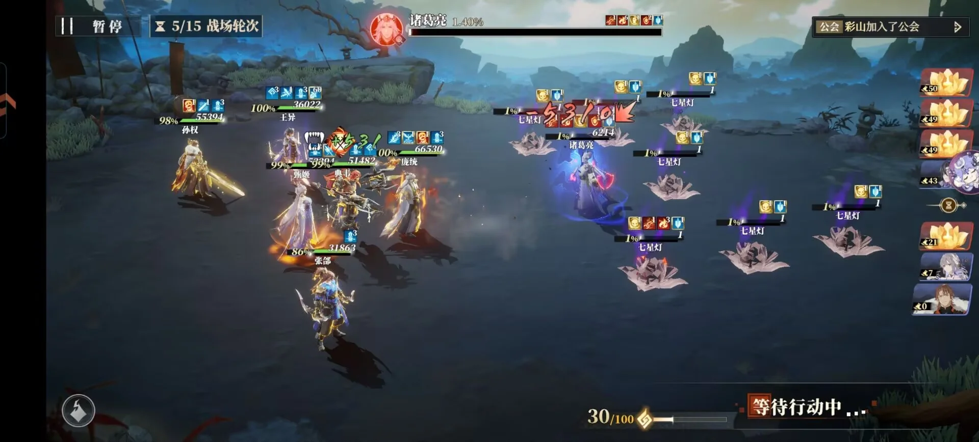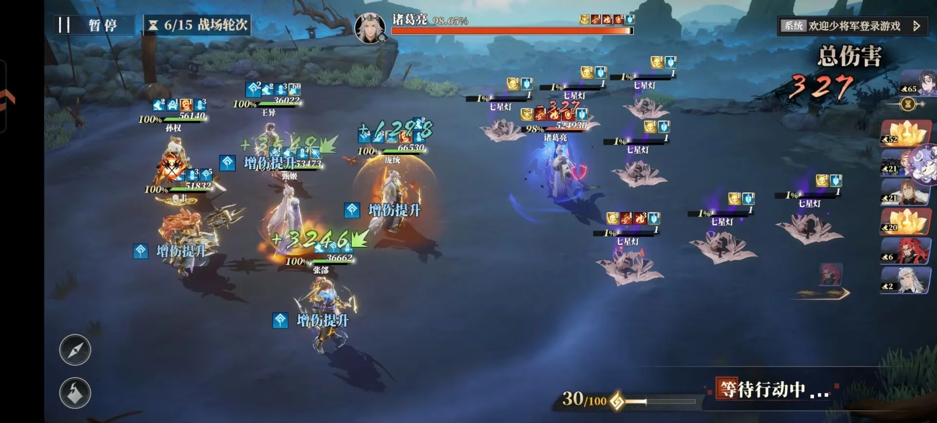 周瑜:我们核心主力!全体伤害+叠火,可以快速把所有的七星灯给灭了。