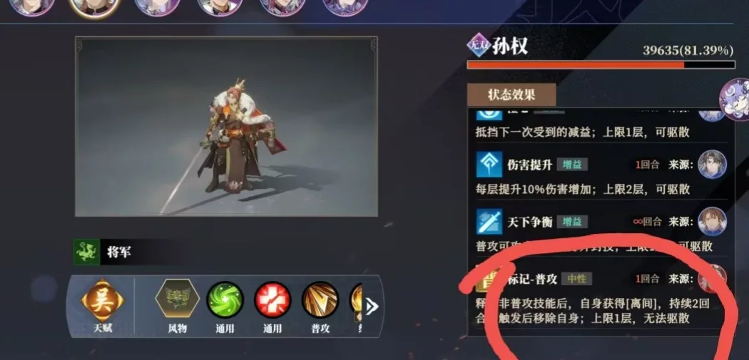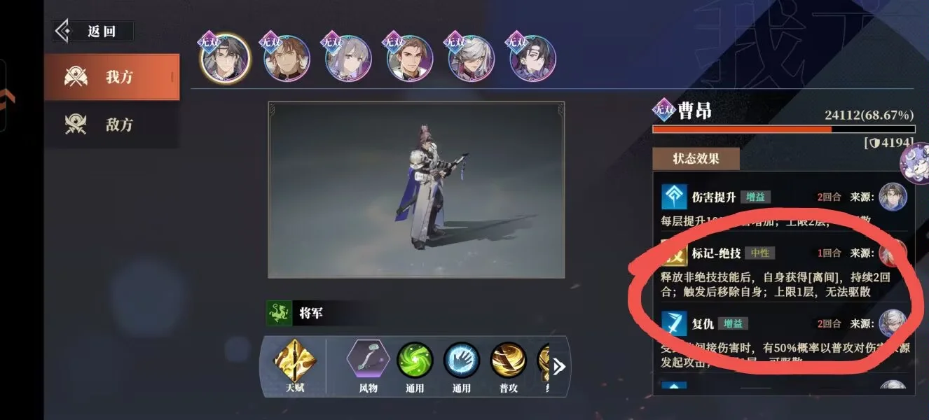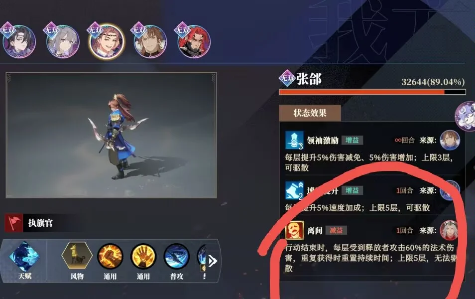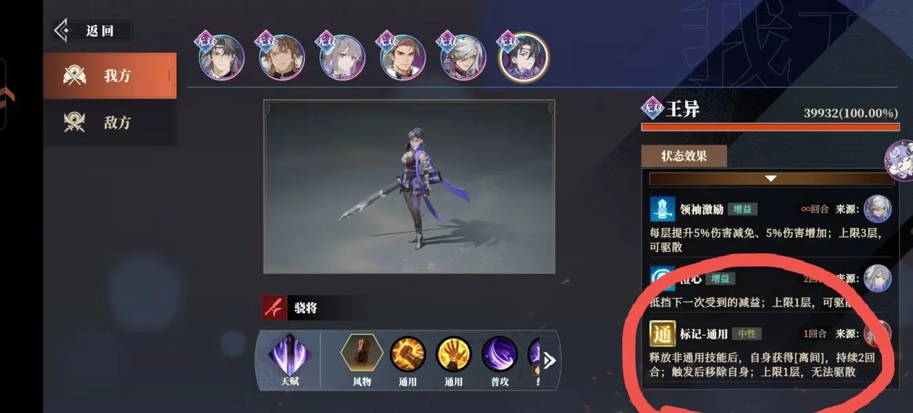 标记通用:就是本回合我方身上有这个buff的武将一定要用通用技能,不然就会获得1层的离间
