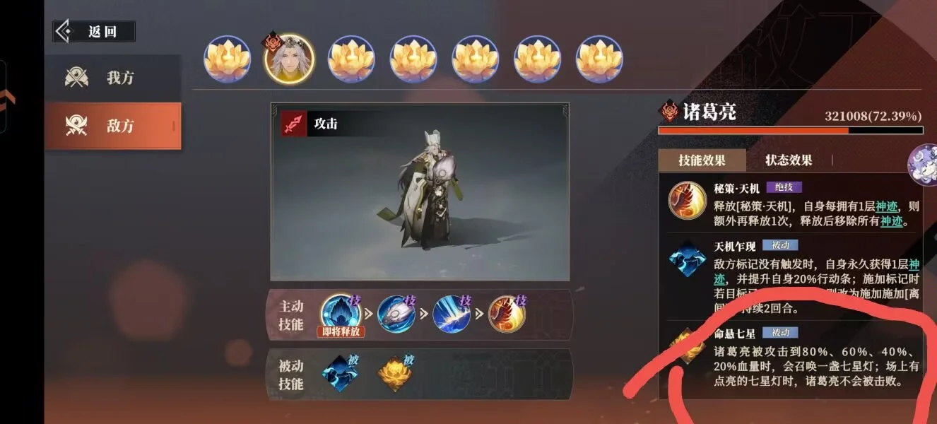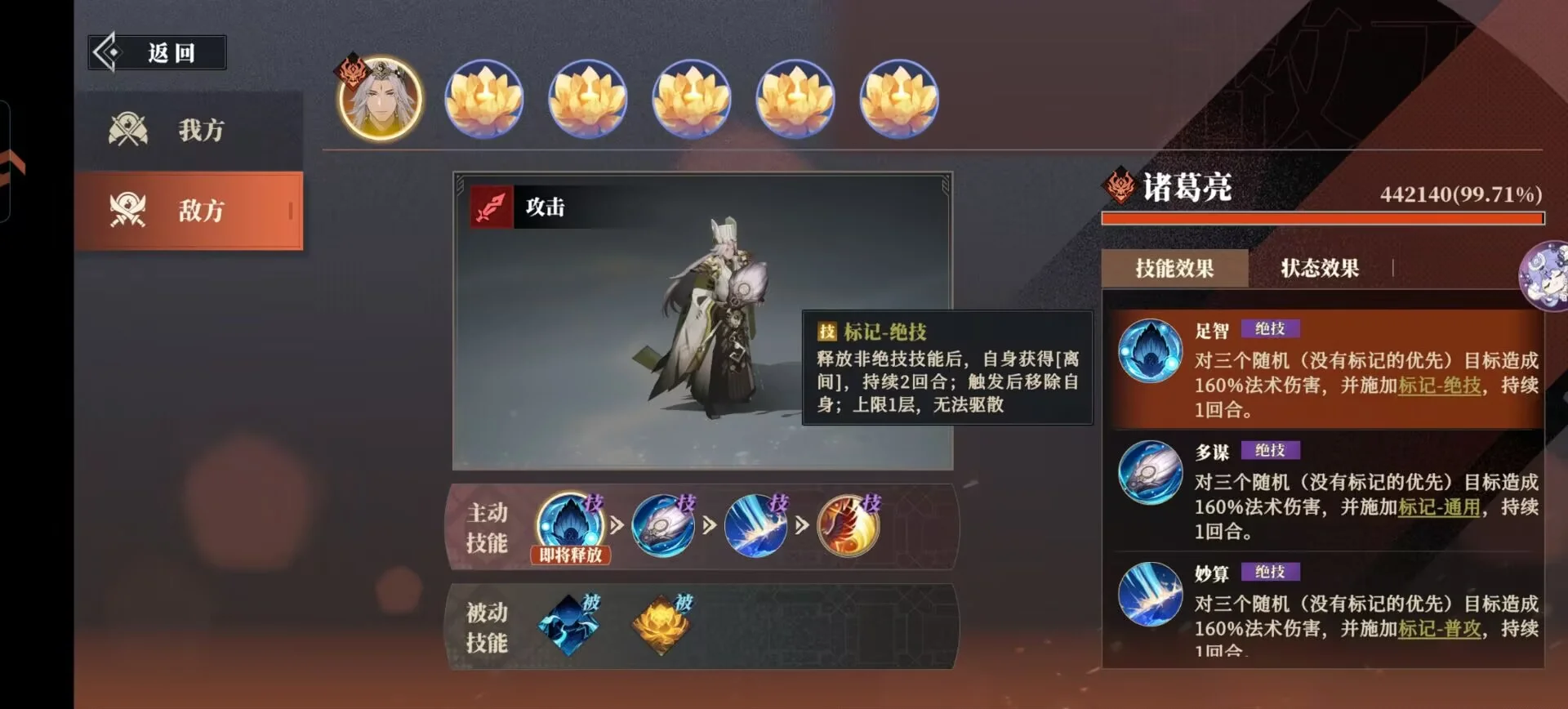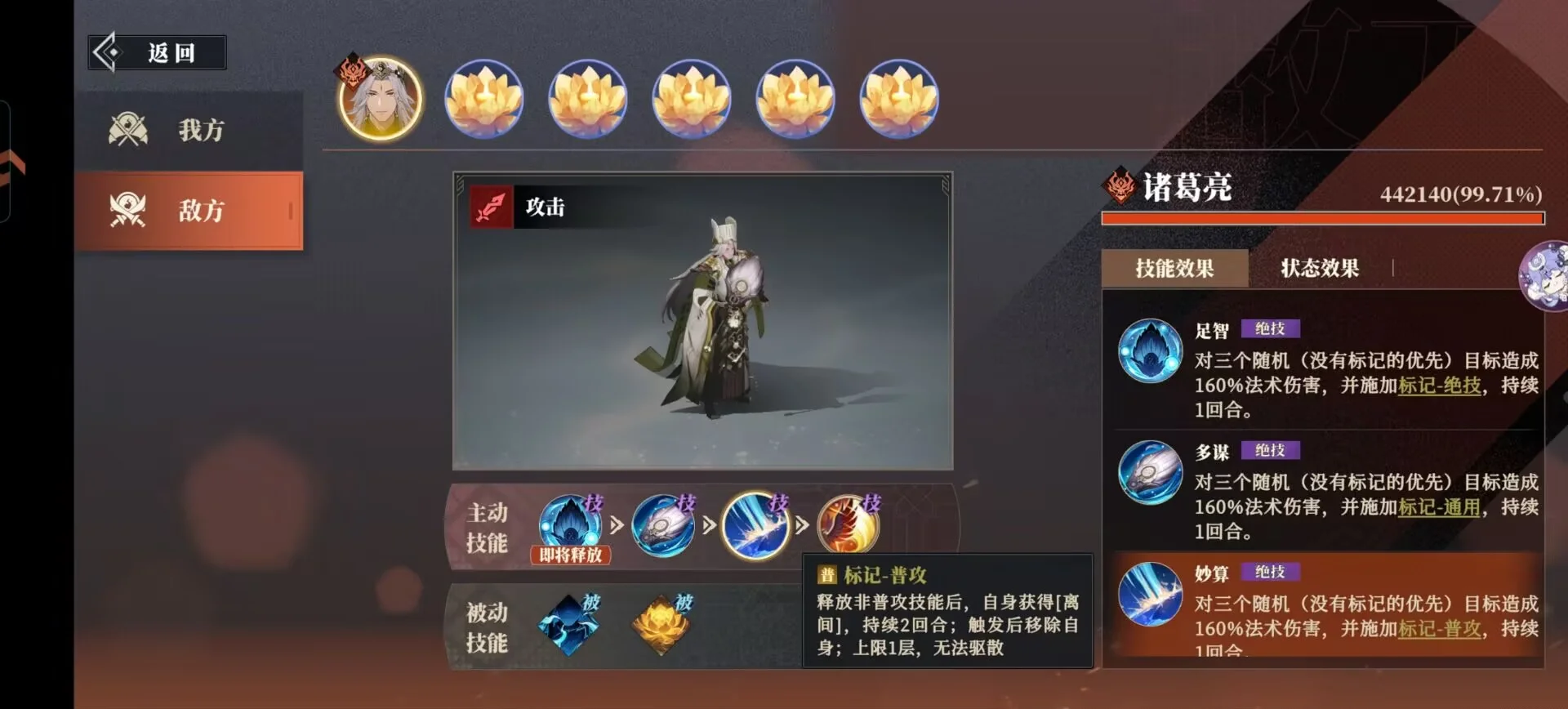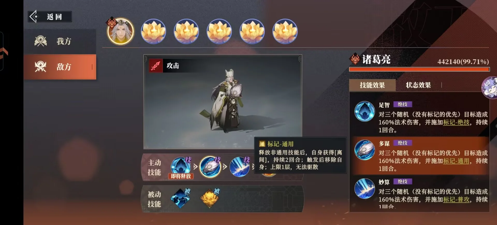 这个其实是难点之一!因为只要我方破除标记机制,诸葛亮就一定可以获得1层神迹。