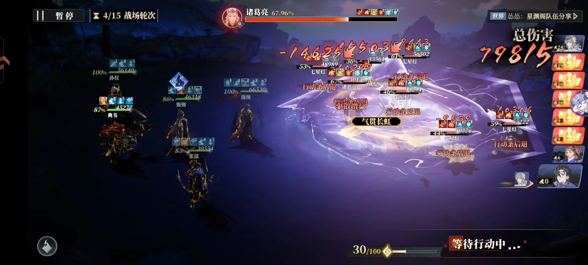 解析:王异打这关也是首选全体输出yyds,蓄势叠起来一个绝技就可以把七星灯打残。