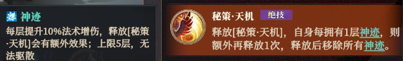 3、【免伤覆盖/封技】:诸葛亮≥3层神迹时,释放技能4秘策*天机时,会造成高额的AOE伤害,无高团队免伤的情况下会造成减员。并且神迹无法驱散,因此高层数神迹下的秘策*天机,只能通过己方的免伤覆盖,或者在诸葛亮每4回合释放技能4之前封技来消解。