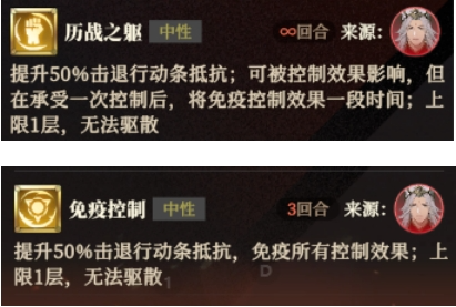 3、【核心】通用被动:50%推条抵抗,受到控制后,3回合内免控。
