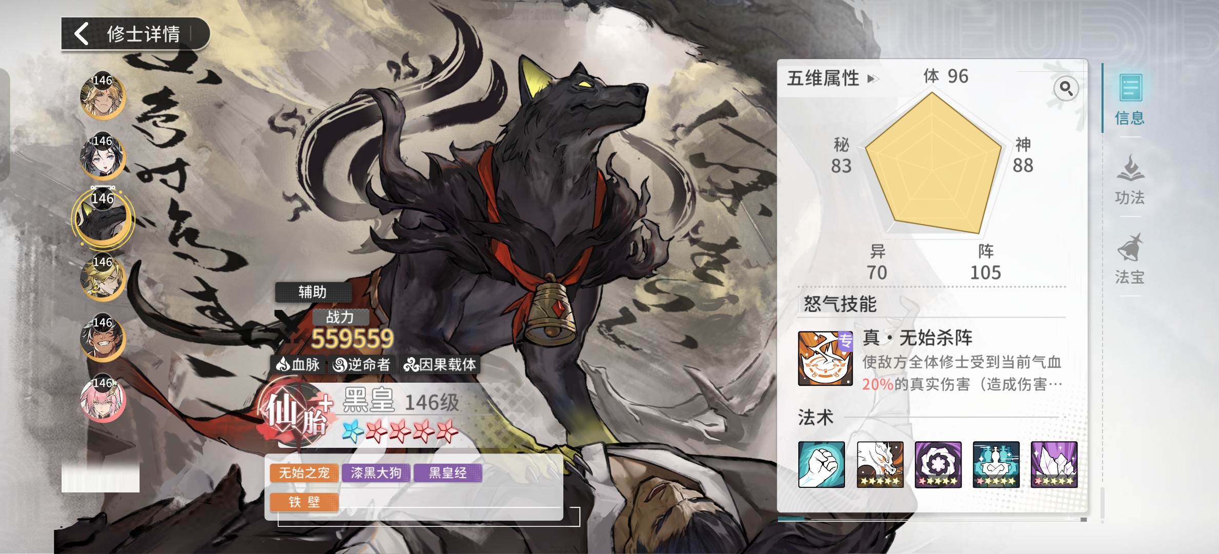 上阵后, 血脉阵营所有修 士前3回合造成伤害提升5%。