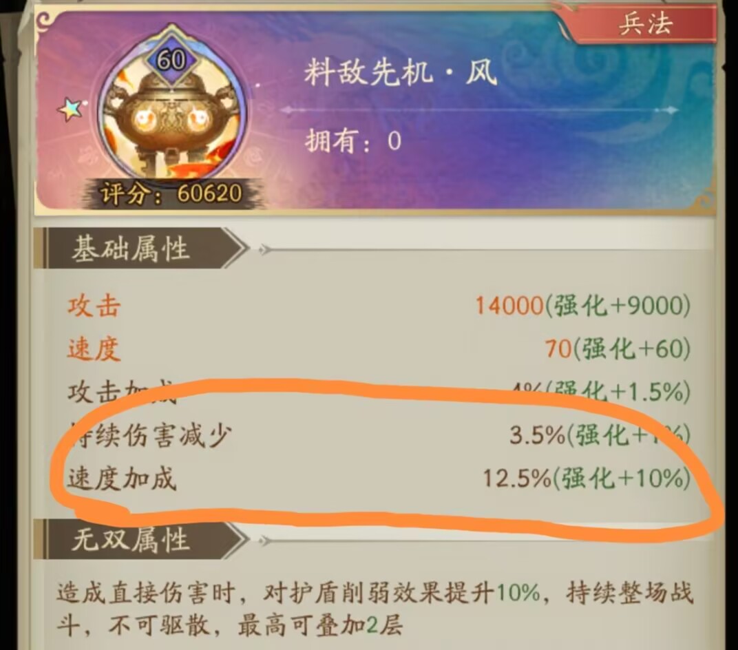 上面也说了进攻队拼的就是速度!无论是神兽的速度加成,还是兵法加成,每一个能够提升速度的细节都不要放过。