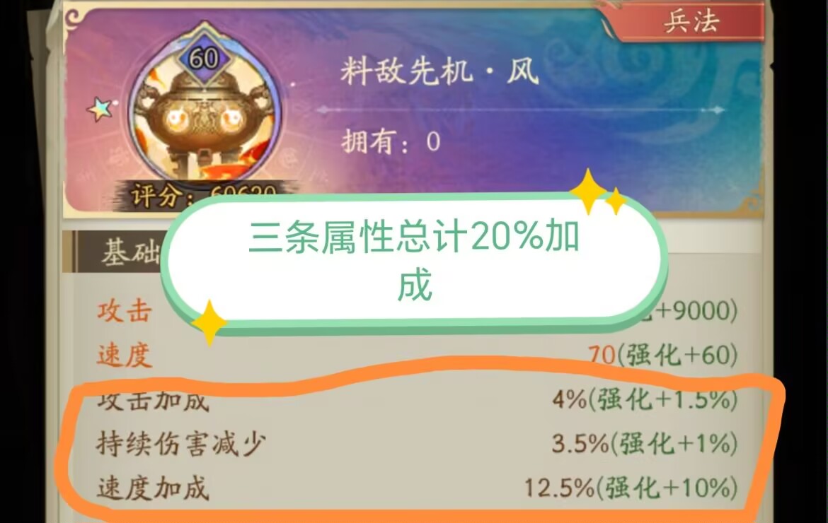60级的兵法洗炼属性三条加成是20%的加成。