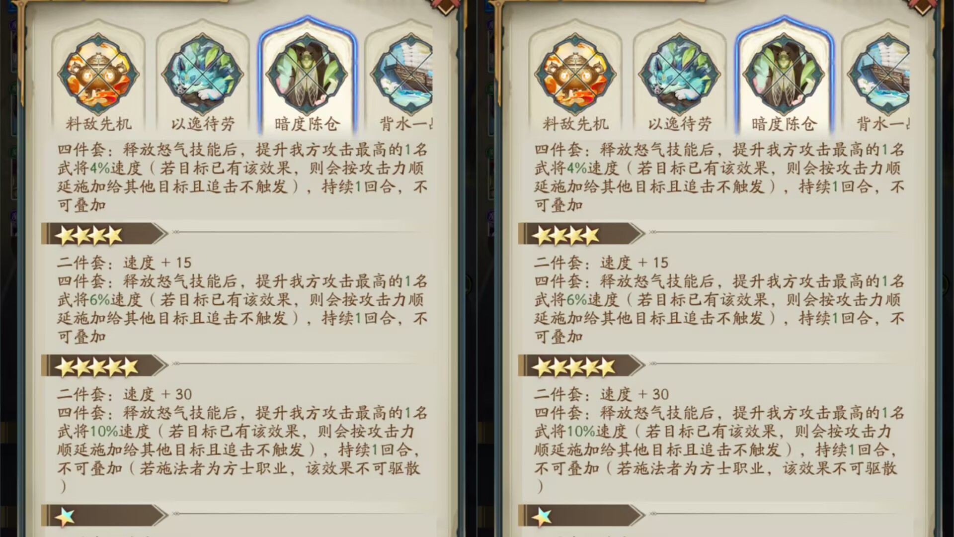 那么张角在佩戴【暗度陈仓】以后,是可以稳定给我方马超提升速度的。