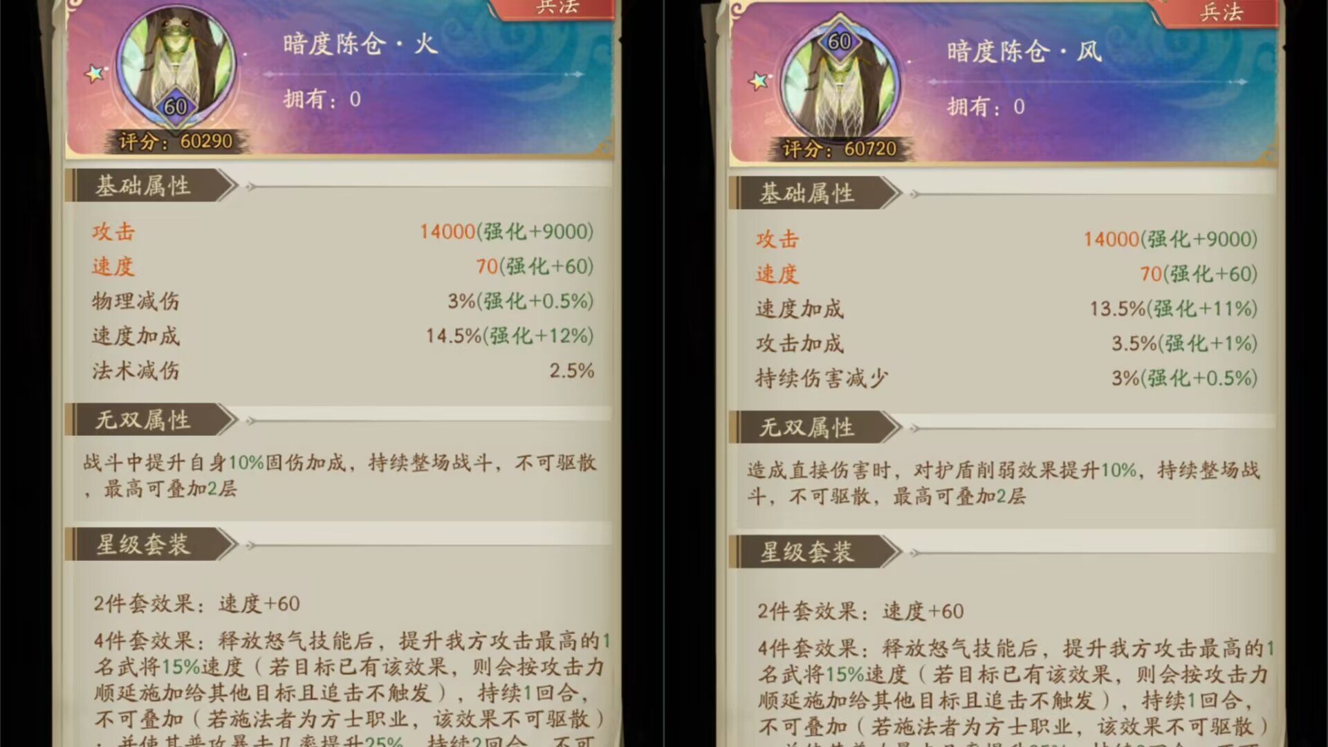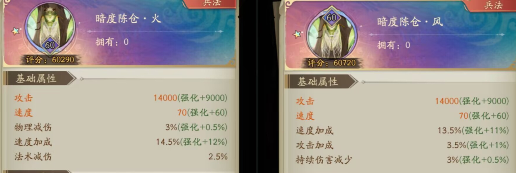 请看下图:火和风兵法都有速度加成。