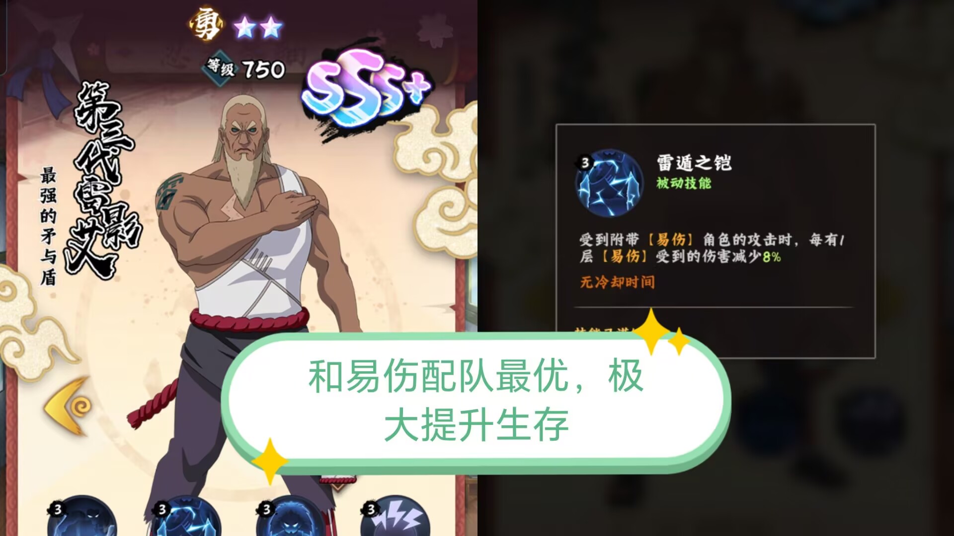这个被动主要也是提升雷影的生存的,让雷影攻守兼备,而不是像卡卡西、奇拉比那种纯输出角色。