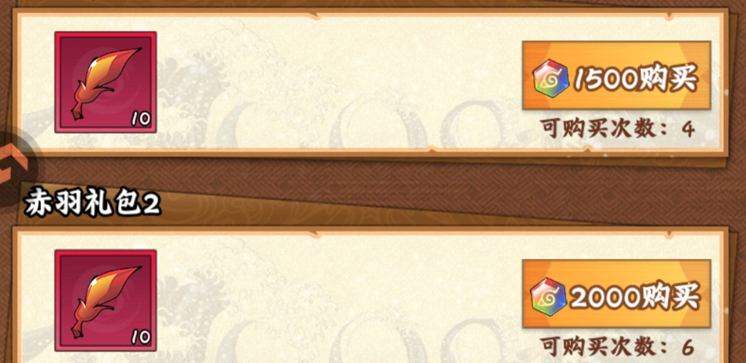 ③忍币赤羽礼包能买完的情况下,尽量买完,这个不需要去节省忍币,赤羽也是我们核心资源。