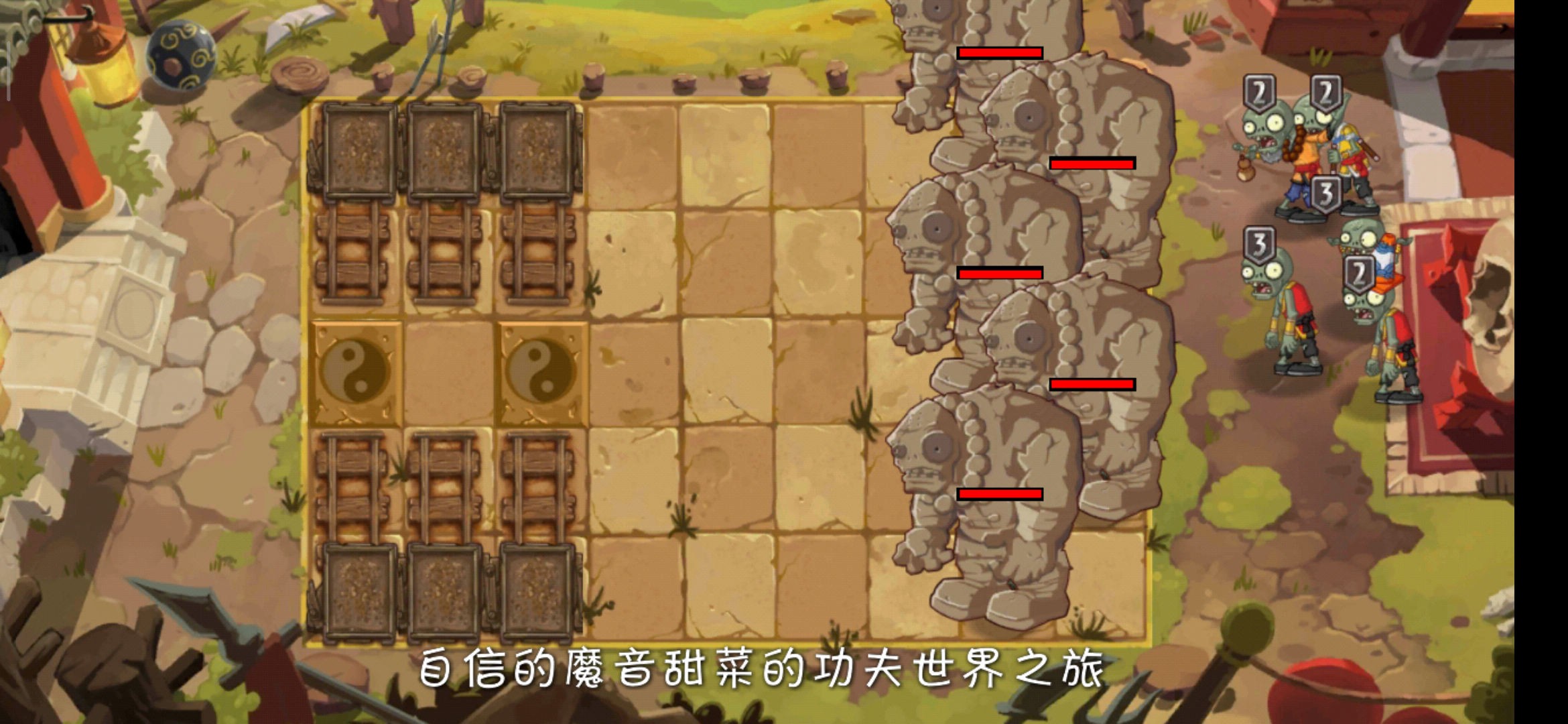 传送带上出现的主要输出植物都是豌豆系的射手——豌豆荚、寒冰射手,而僵尸一边会经常出现双截棍武僧僵尸,众所周知双截棍武僧僵尸天克豌豆系射手,当然并不是说射手系的这两种植物废掉了,它们仍然是有他们的用处的。除去这两种射手还有竹笋、高坚果、仙桃、土豆地雷。在这一天里面有导轨,要注意的是竹笋不能种植在导轨上,从某种意义上说,竹笋不容易被杀死所以从导轨往右的草地都可以用来种植竹笋。