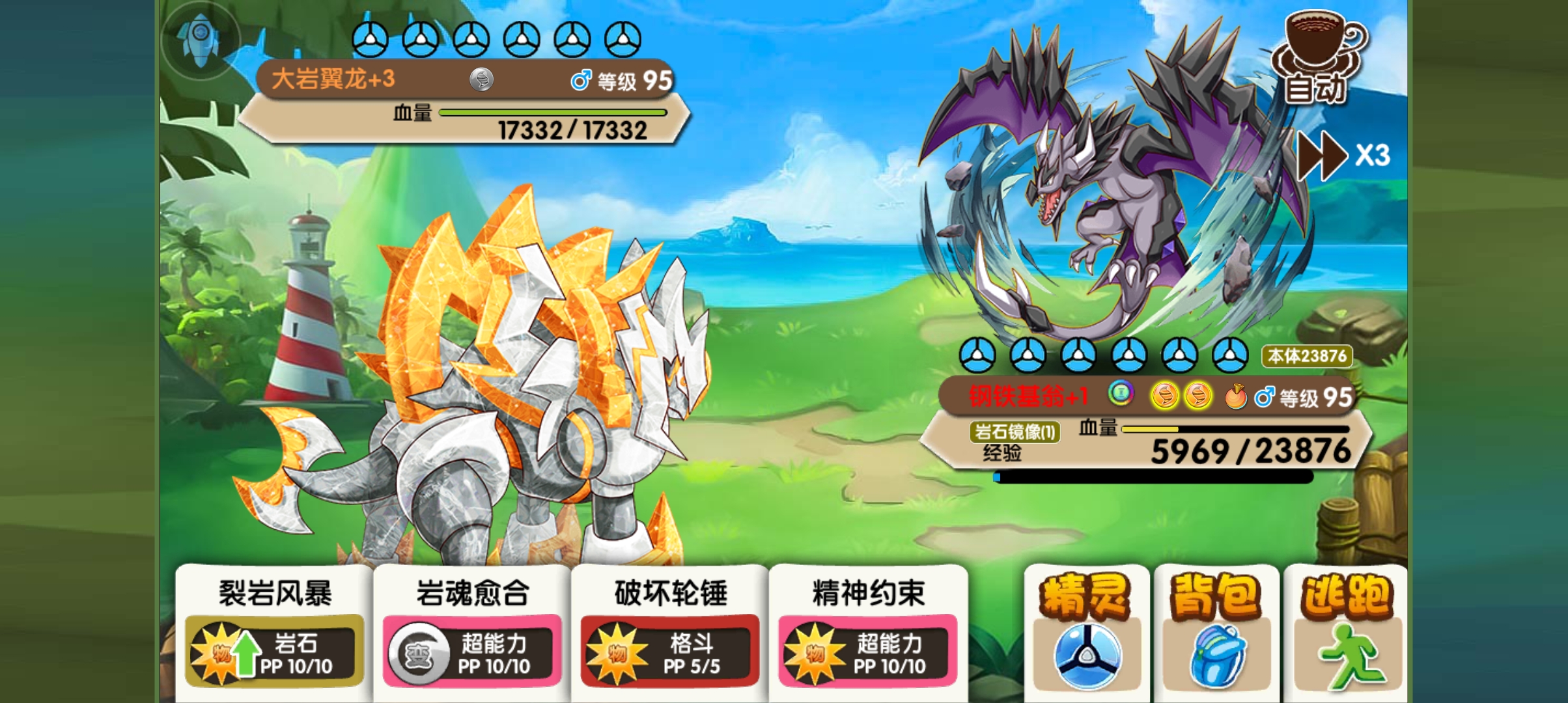 首先这边推荐的极限加速配置是很极端的一种配置,我这边是给出的建议,用不用就看你们的了,自身拥有两个专属技能都和镜像有关系,裂岩风暴主要是根据自身的镜像层数,然后造成特定的进击伤害,另外一个岩魂愈合,这个技能不仅可以回血,而且还可以在首次使用的时候增加两层镜像,没错,这个技能就是相当关键的,增加镜像的招式,不过它的缺点就是必须要首发登场使用才能增加两层,后续如果再点击,那就不行了,必须要下场之后再次上场才能够获取两层,要不然的话一直点这个招式,只能恢复50%的血量,所以说这个精灵,它的专属攻击招式是无所谓的,但是这个专属回复招式,它是核心中的核心,没有这个技能,那它的镜像就只有一次性了,就只剩下减伤50%和加上100%的效果其他的都没了。