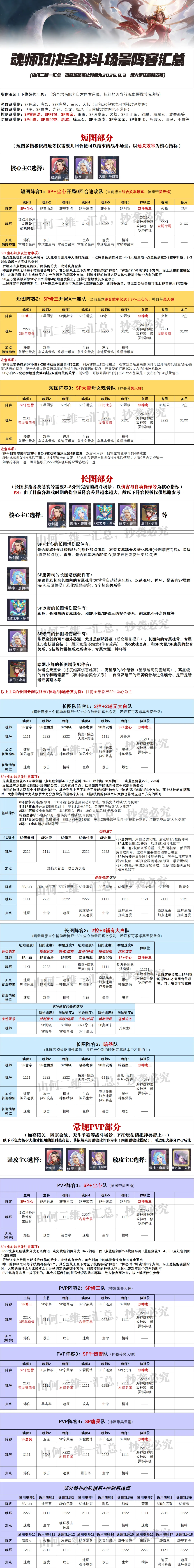 今天的攻略是该到了汇总一下当前版本的全战斗场景阵容汇总的日子了,这次距离上一波更新实在有点久,先给大家说声抱歉,而随着这几个月几位打开新魂师的上线,维一个人的感觉是目前的阵容多元性着实只能说越来越低,基本上短图、长图、大部分的常规PVP战斗被动那几个核心魂师所霸占,哎......百花齐放百家争鸣的日子真是一去不复返啊,悲剧......当然该说的该做的咱们还是得搞起来,希望今天的攻略能给大家一些小小的帮助和欢乐吧。