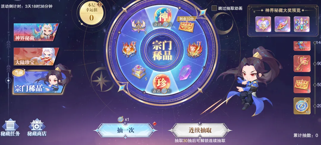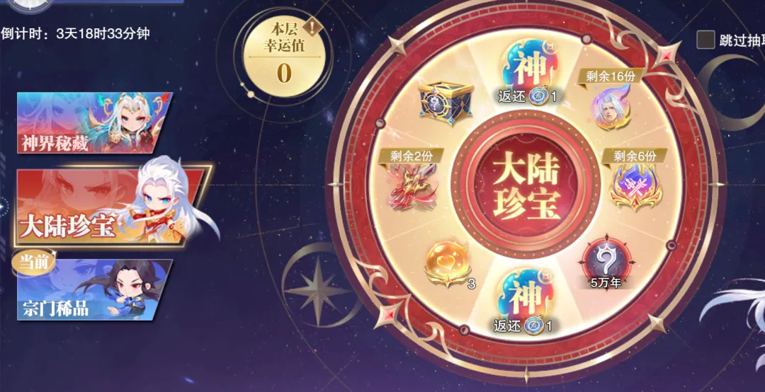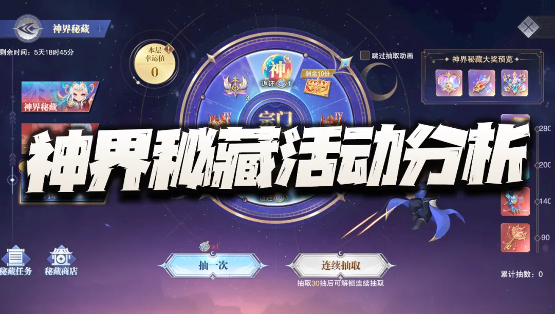 今天游戏也是正式开启了全新的“神界秘藏”活动,这个活动的形式是全新的一个三轮盘叠加形式,光光看官方所描述的规则还有点复杂,所以很多朋友上手后也是一脸懵逼,所以今天的攻略咱们就来简单说说其中的逻辑,希望能给大家一些小小的帮助和欢乐。