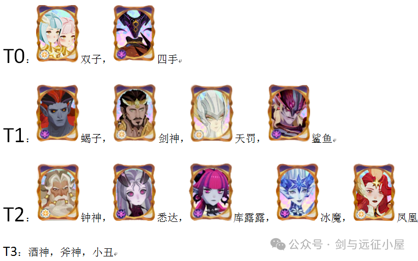 折中可以考虑鲨鱼,因为鲨鱼几乎全能,PVP、无尽迷梦、世界Boss、灾厄均能上场。唯一不足是斗不过新英雄的数值,容易被背刺失业,就业二档阵容。