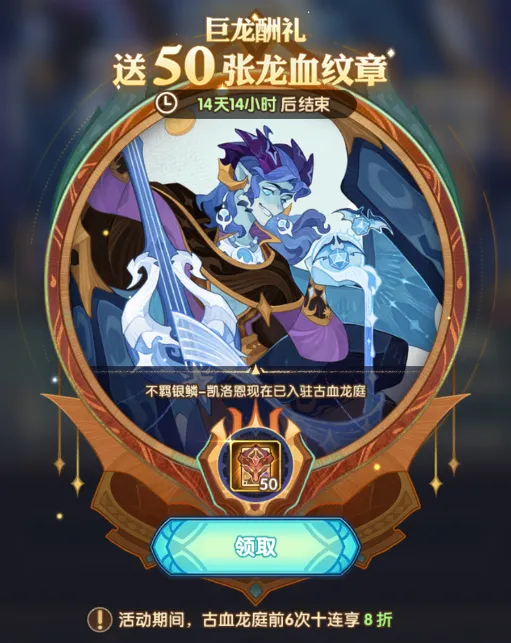 ◇活动简述:活动期间达到16-1的冒险者可以免费领取50张龙血纹章,同时古龙血庭中将开启限时优惠,前6次十连抽将享有8折优惠。